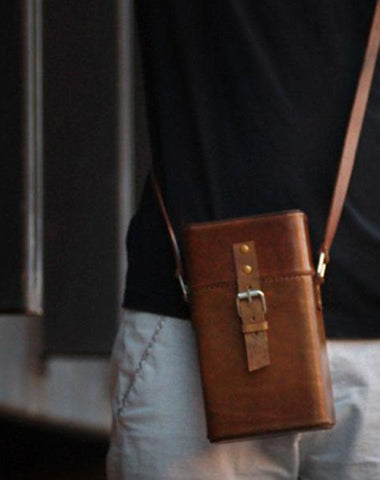 Design: Handmade Leather Mens Small Box Bag Shoulder Bag Messenger Bag for Men