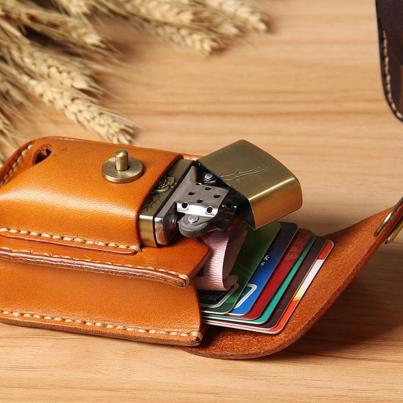 Design: Handmade Leather Mens Small Cigarette Cases Waist Bag Hip Pack Belt Bag Fanny Pack Bumbag for Men