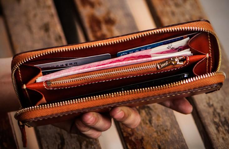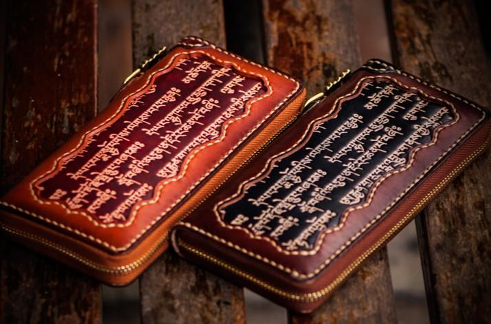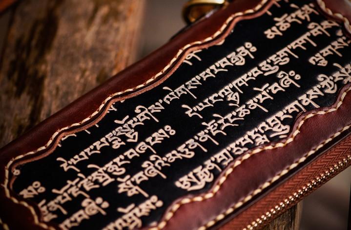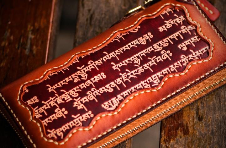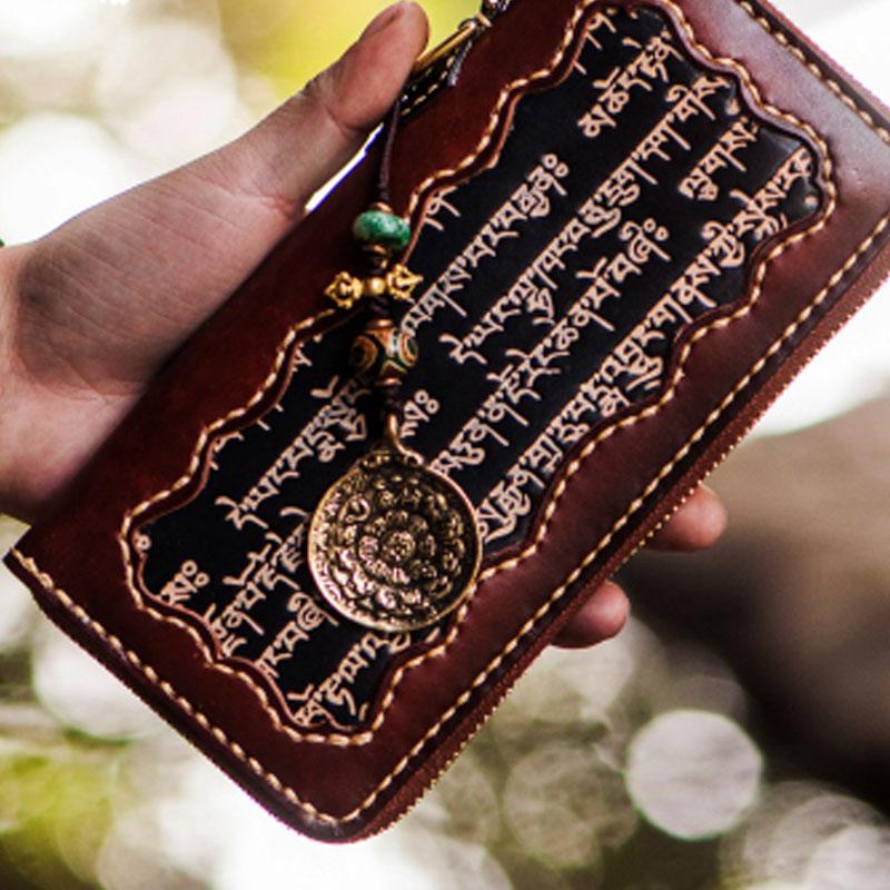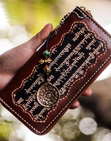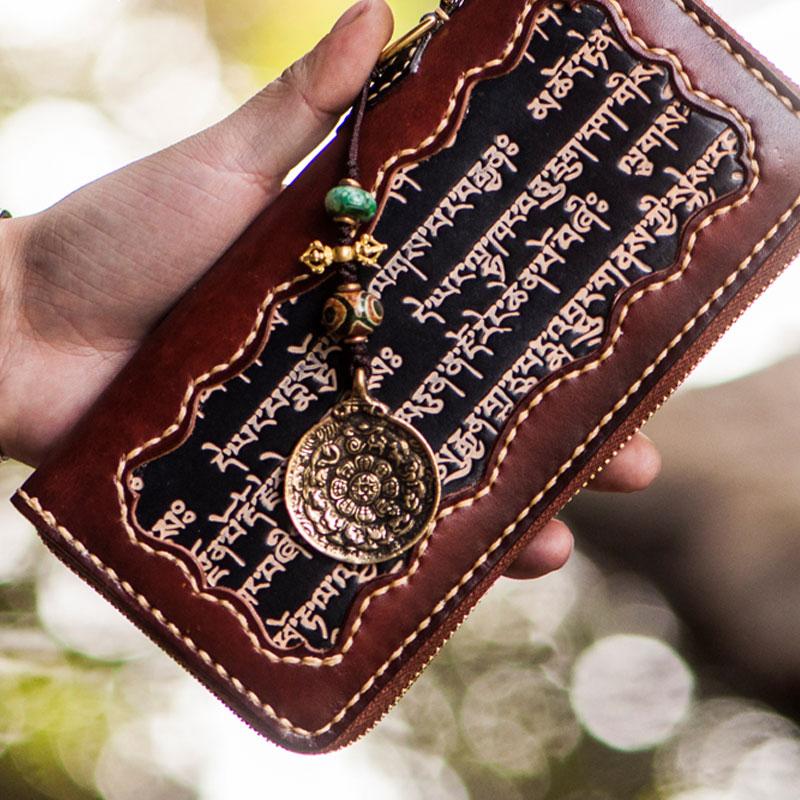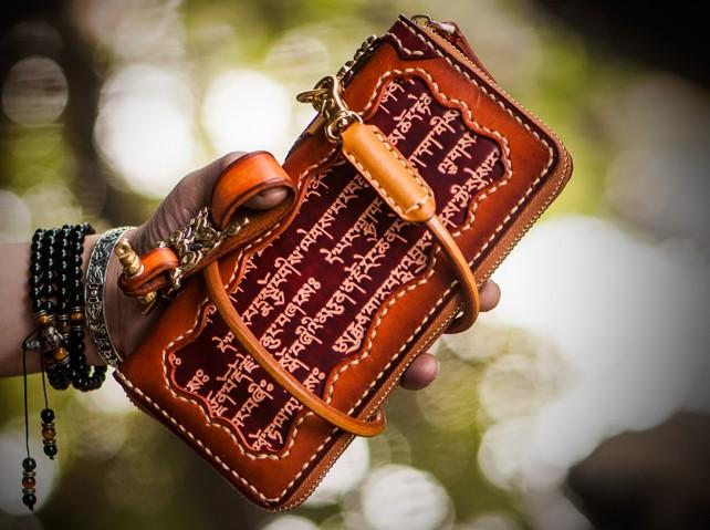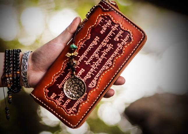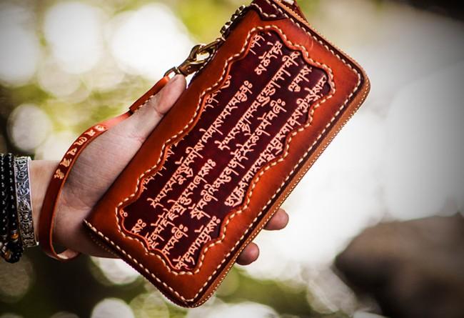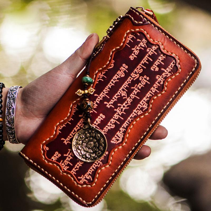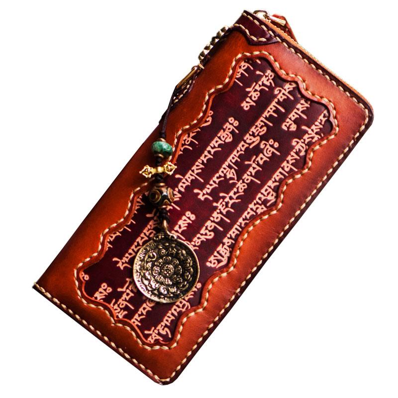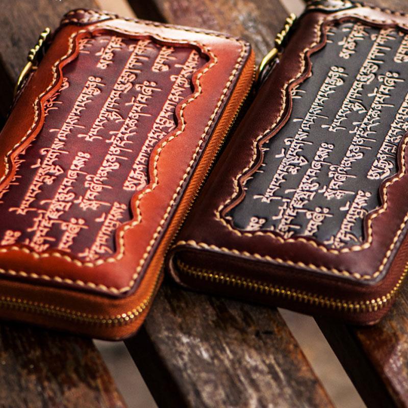 Handmade Leather Mens Tibetan Chain Biker Wallet Cool Leather Clutch Wallet Long Wallets for Men