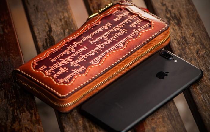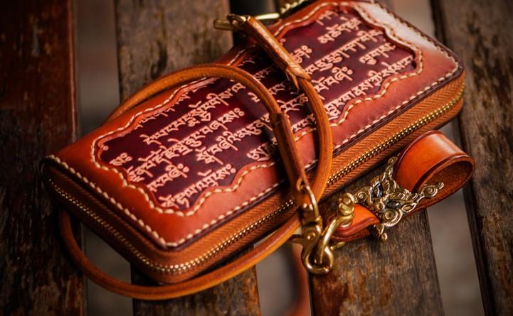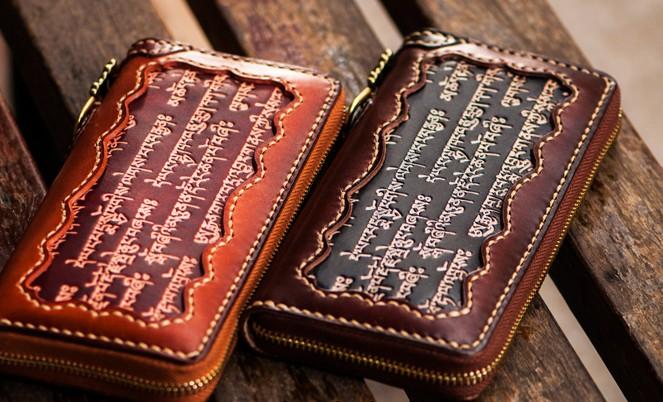 Design: Handmade Leather Mens Tibetan Chain Biker Wallet Cool Leather Wallet Long Clutch Wallets for Men