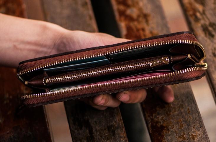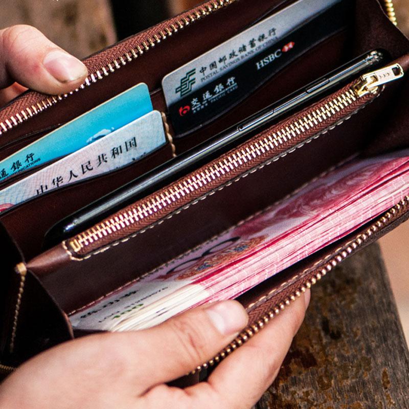 Slots: 2 full size bill slot, 8 card holders, 1 zipper slot