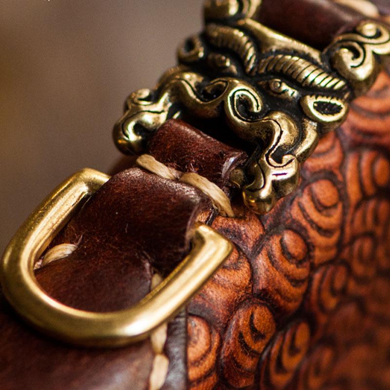 Style: Handmade Leather Mens Tooled Buddha&Demon Chain Biker Wallet Cool Leather Wallet Long Clutch Wallets for Men