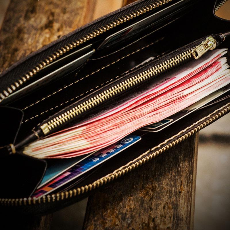 Slots: 2 full size bill slot, 8 card holders, 1 zipper slot