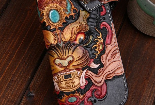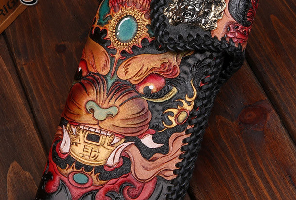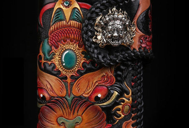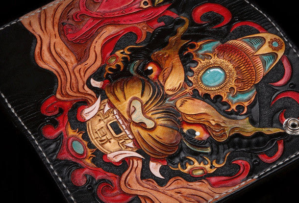 Design: Black Carved Tooled Monster Biker?Wallet