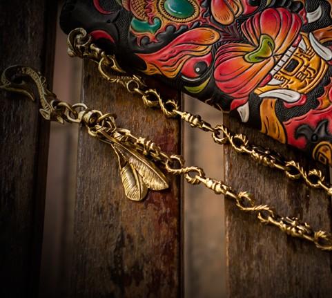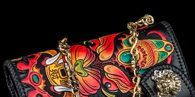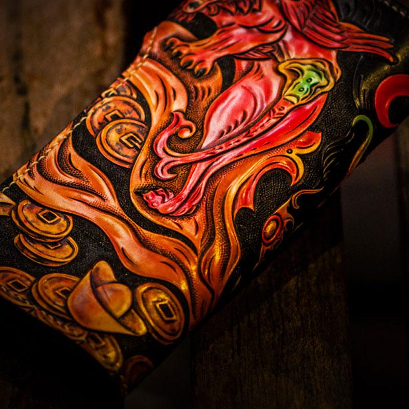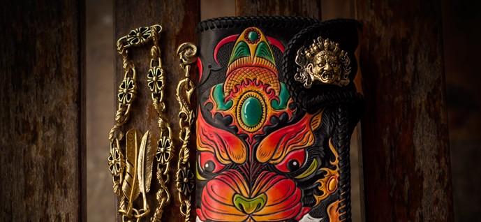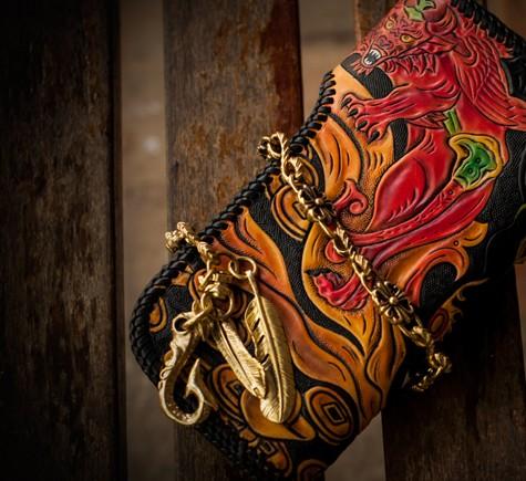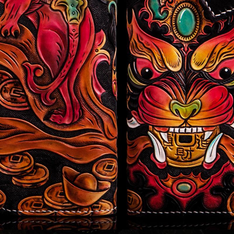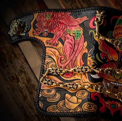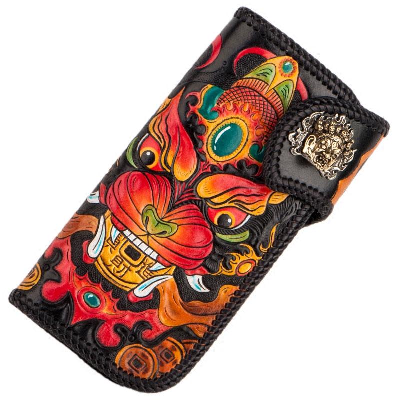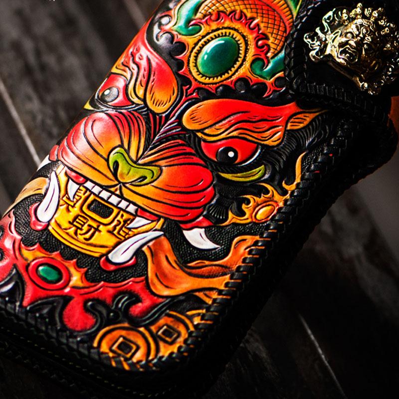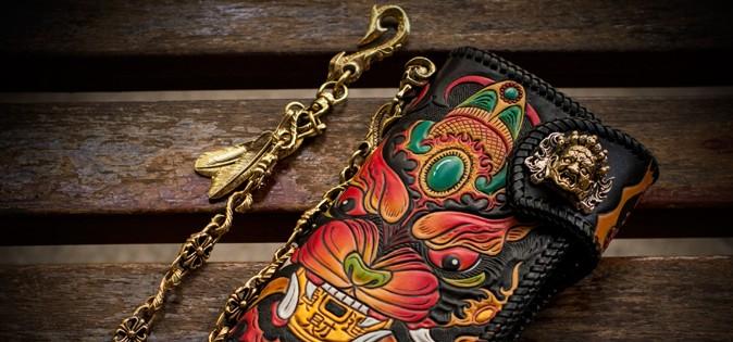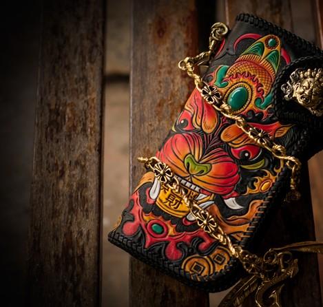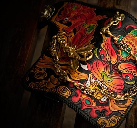 Handmade Leather Monster Mens Chain Biker Wallets Cool Tooled Leather Wallet Long Wallets for Men
