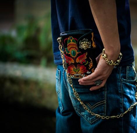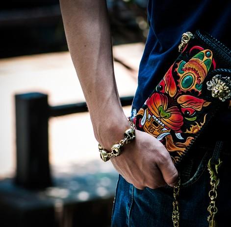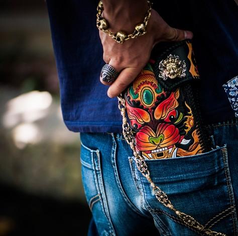 Style: Handmade Leather Monster Mens Chain Biker Wallet Cool Leather Wallet Long Phone Wallets for Men