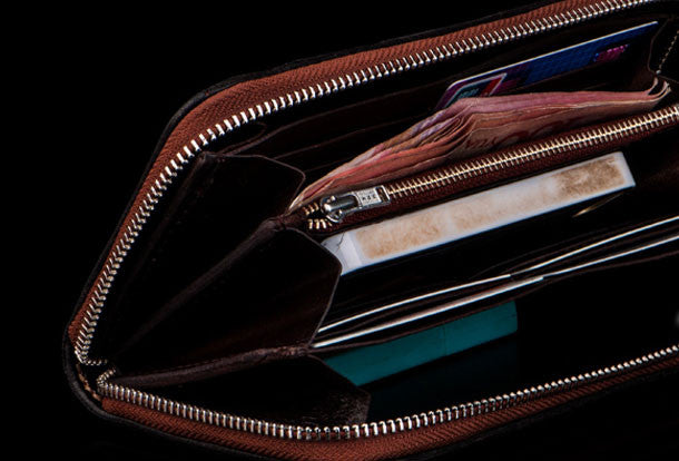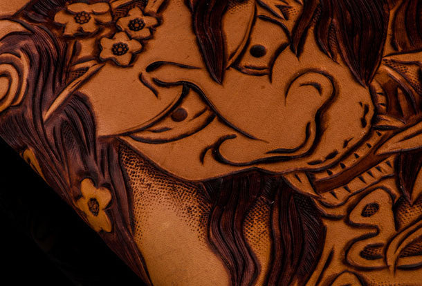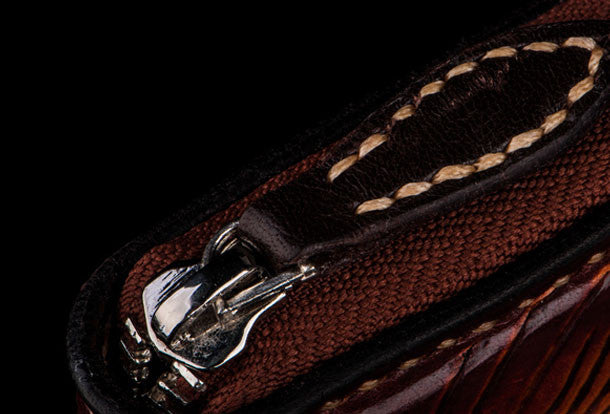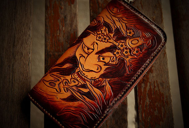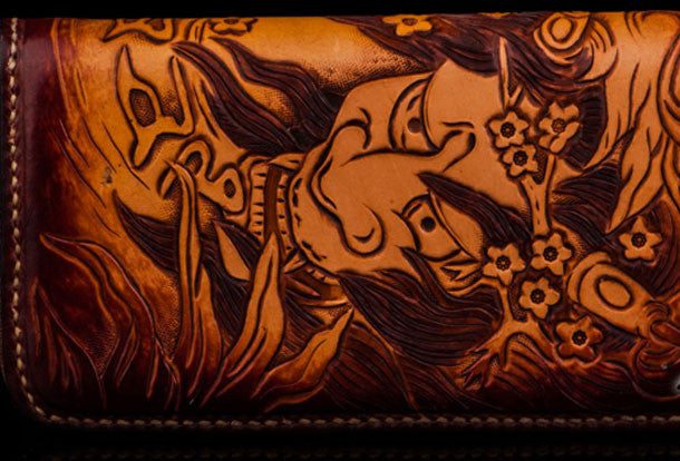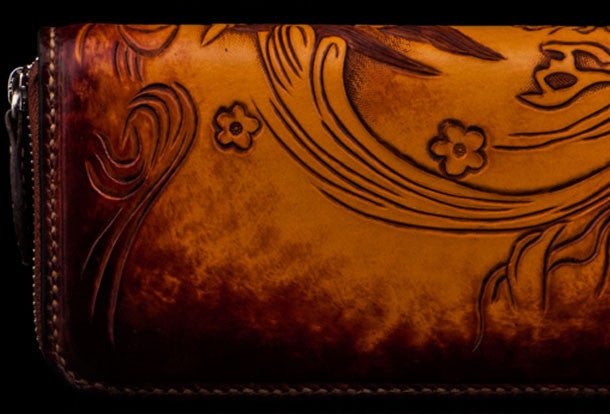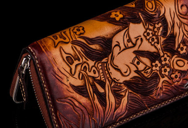 Design: Brown Carved Tooled prajn¡§? biker Clutch zip Leather Wallet