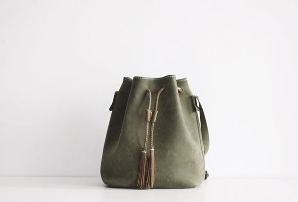 Design: Handmade leather purse bucket phone bag shoulder bag cossbody bag purse women