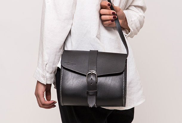Design: Handmade Leather purse crossbody bag black for women leather shoulder bag