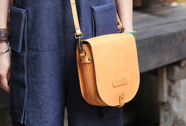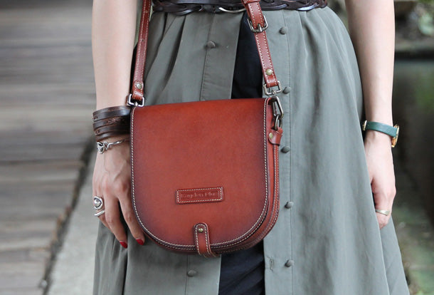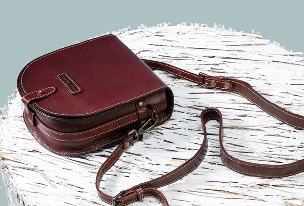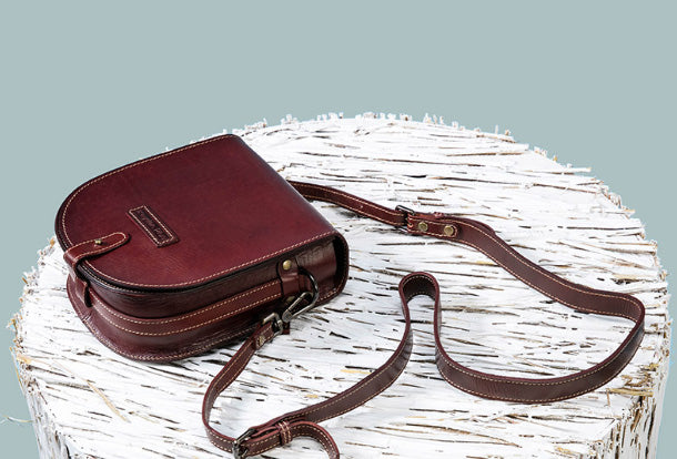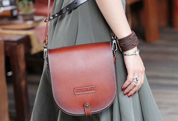 Design: Handmade Leather Purse Saddle Bag Round Circle Bag Messenger Bag Crossbody Bag Shoulder Bag Purse For Women?