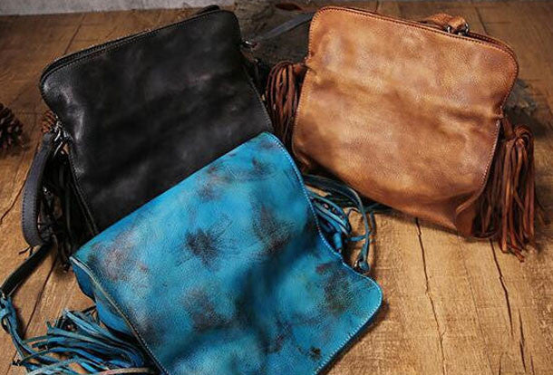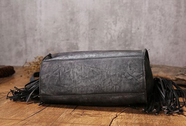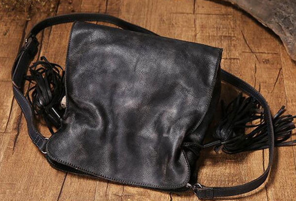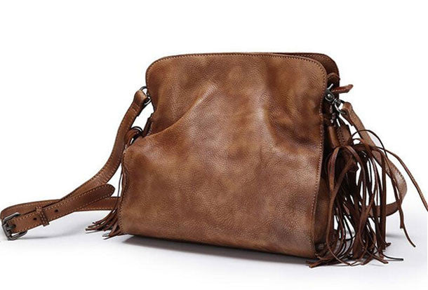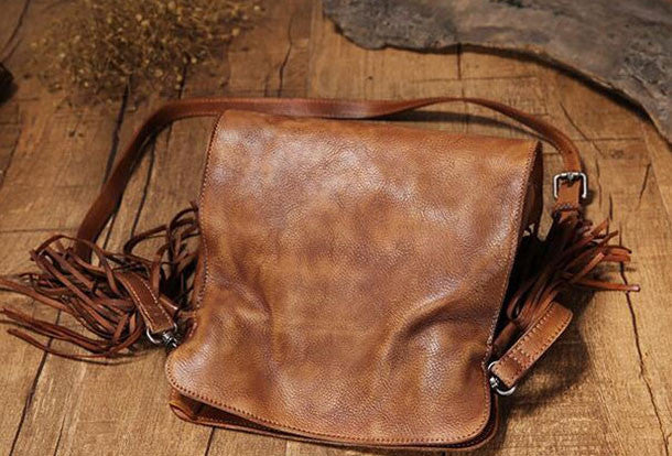 Style: Vintage Womens Leather shoulder bag leather crossbody bag purse with tassels