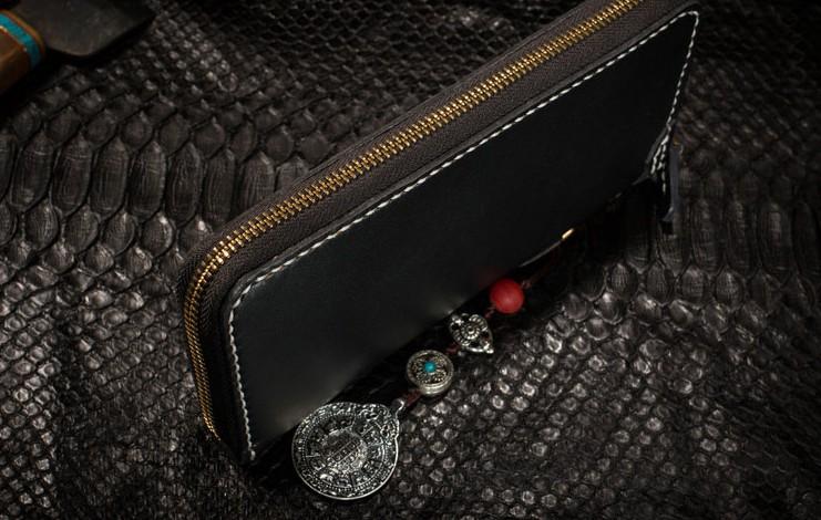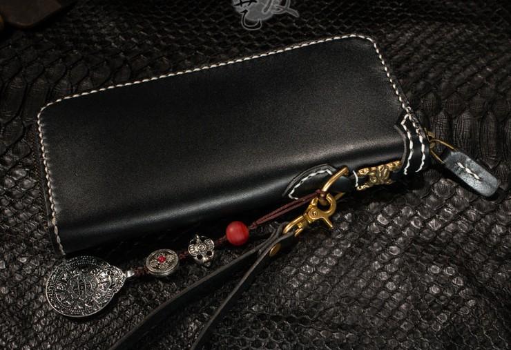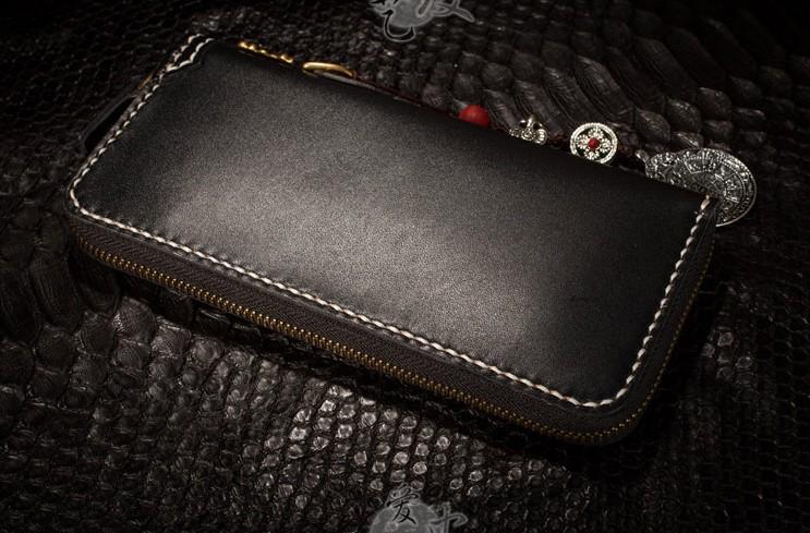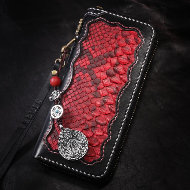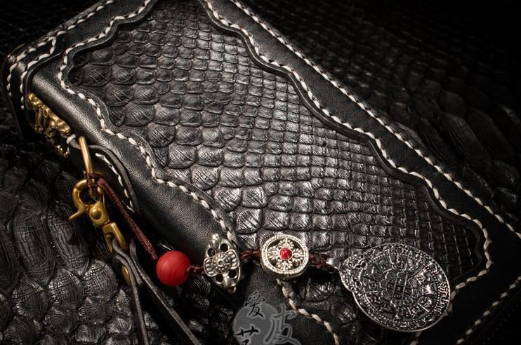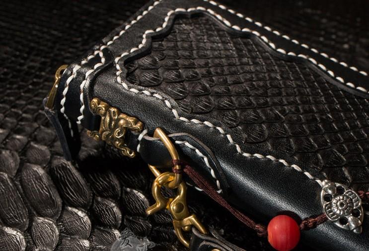 Design: Handmade Leather Python Skin Mens Chain Biker Wallet Cool Leather Wallet Long Phone Wallets for Men