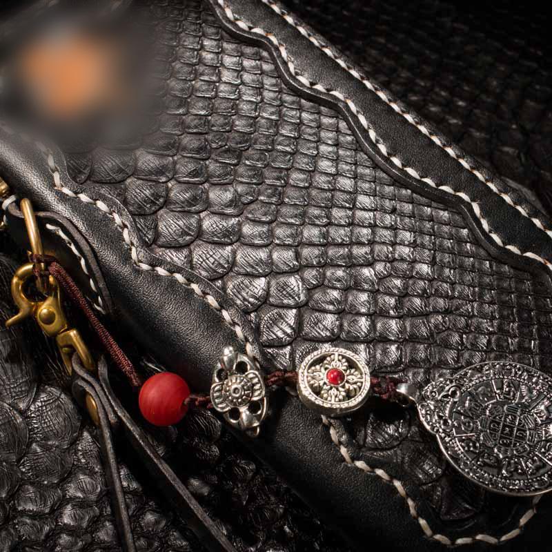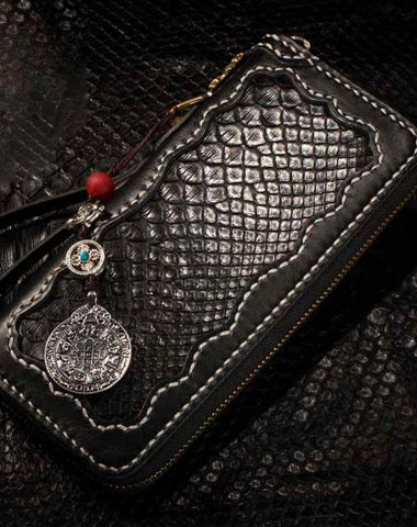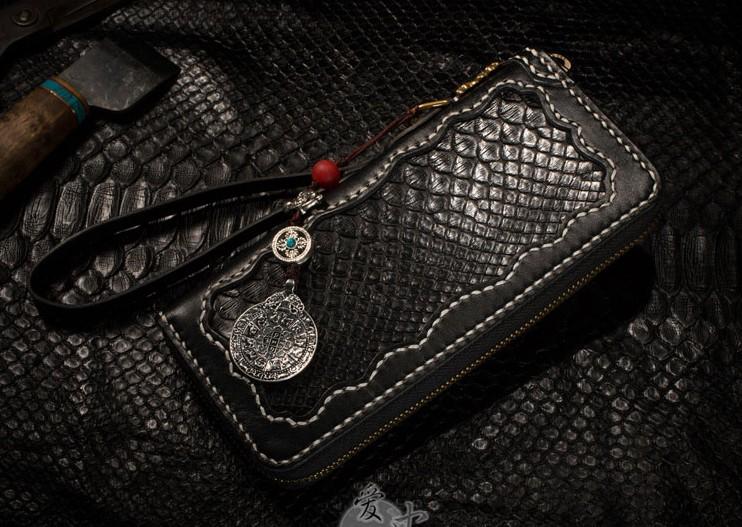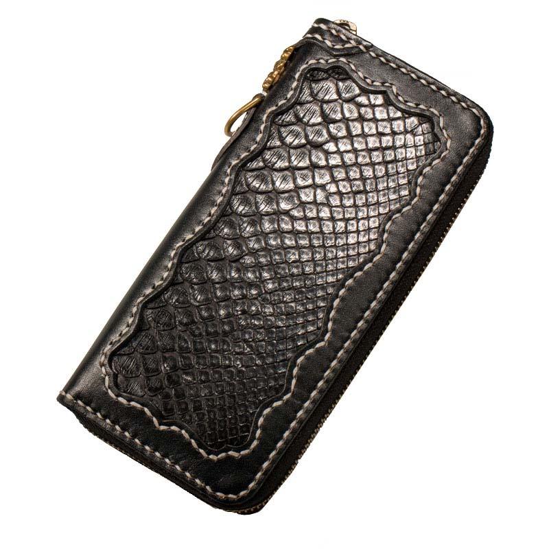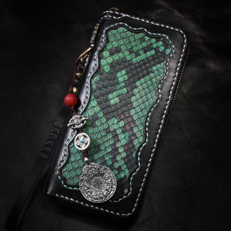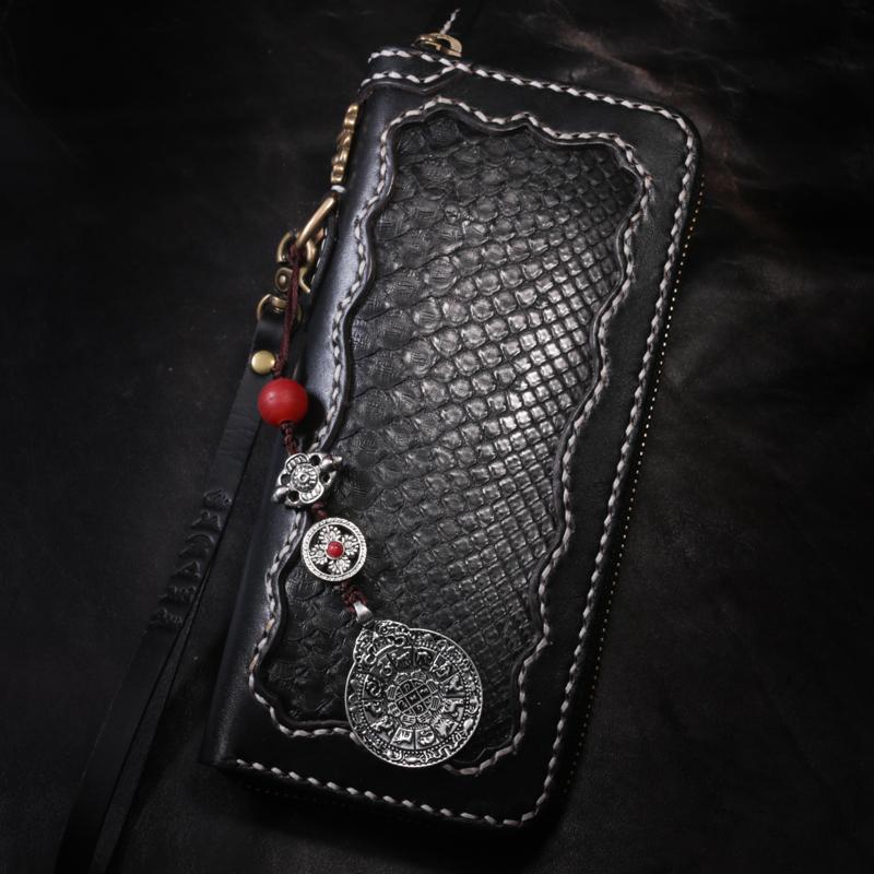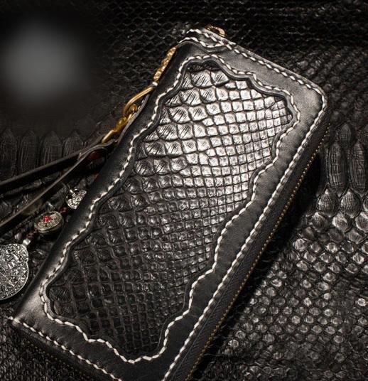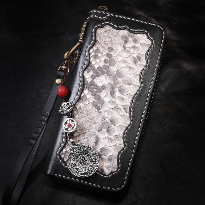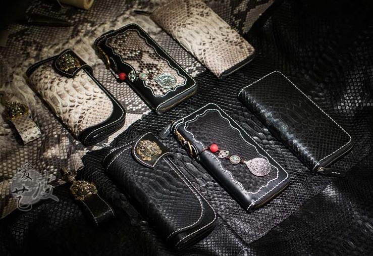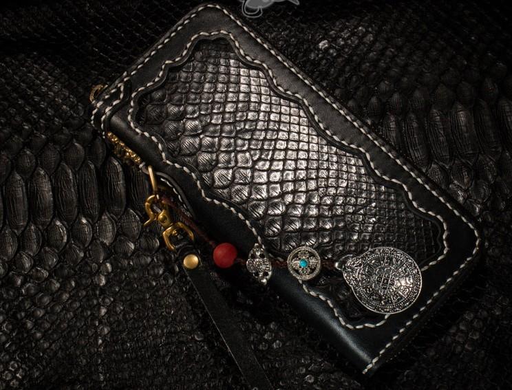 Style: Handmade Leather Python Skin Mens Chain Biker Wallet Cool Leather Wallet Long Phone Wallets for Men
