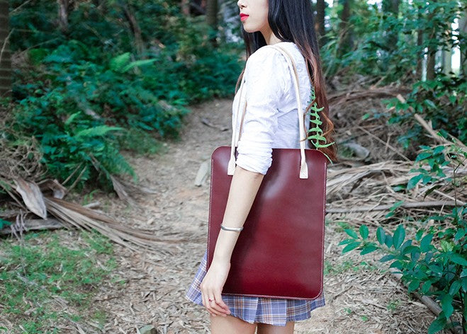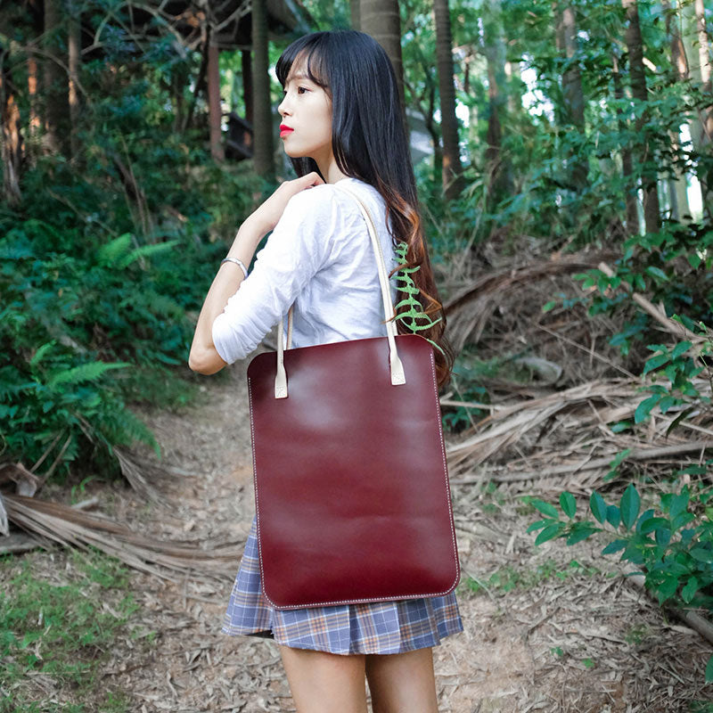 Style: Handmade Leather Red Womens Slim Tote Sh