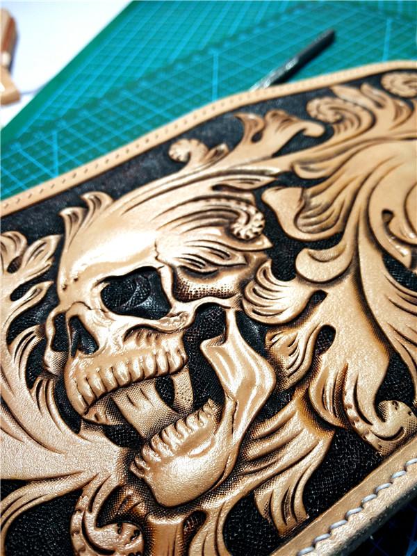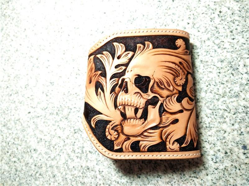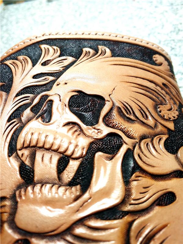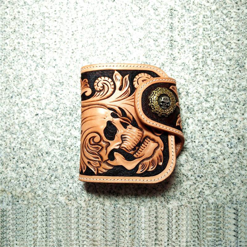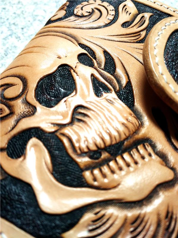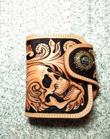 Style: Handmade Leather billfold Skull Biker Wallet Mens Wallet With Chain Wallet Biker Wallet for Men
