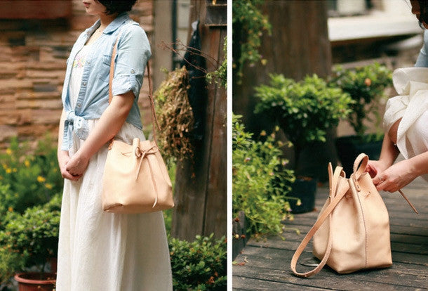 Design: Vintage Leather Women Shoulder Bag Bucket Bag