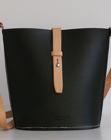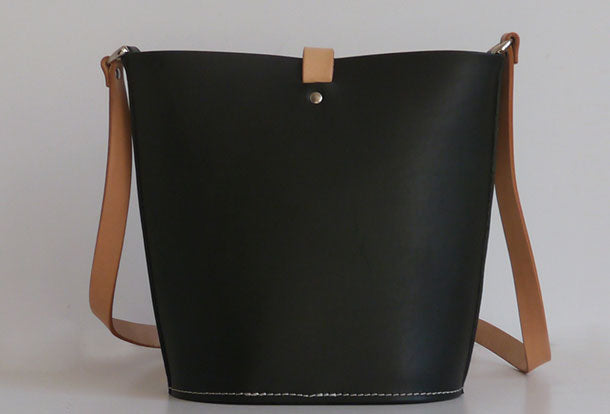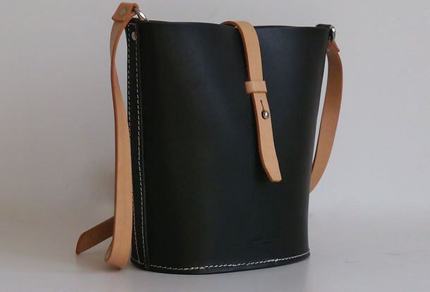 Design: Handmade Leather shoulder bag bucket bag black for women leather shoulder bag