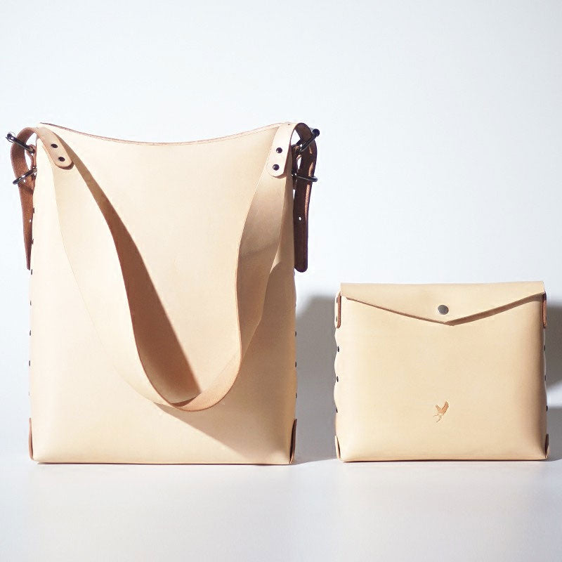 Design: Handmade Leather Shoulder Tote Purse With Matching Wallet for Women
