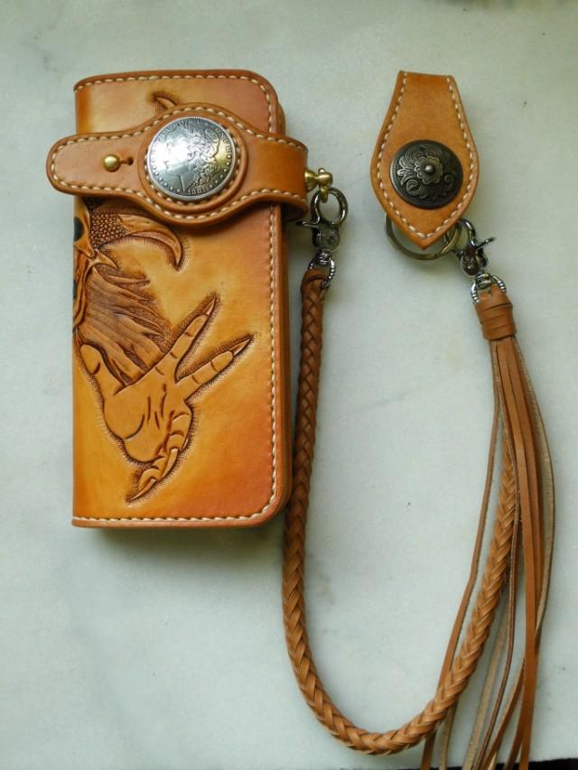 Style: Handmade Leather Skull Devil Mens Chain Wallet Biker Wallet Cool Leather Wallet Long Tooled Wallets for Men