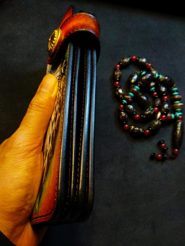 Style: Handmade Leather Skull Indian Mens Chain Wallet Biker Wallet Cool Leather Wallet Long Tooled Wallets for Men