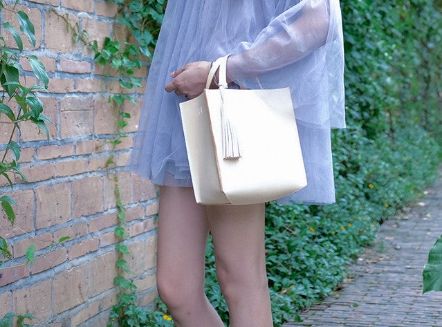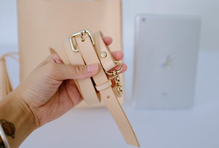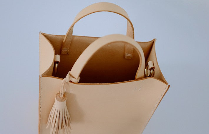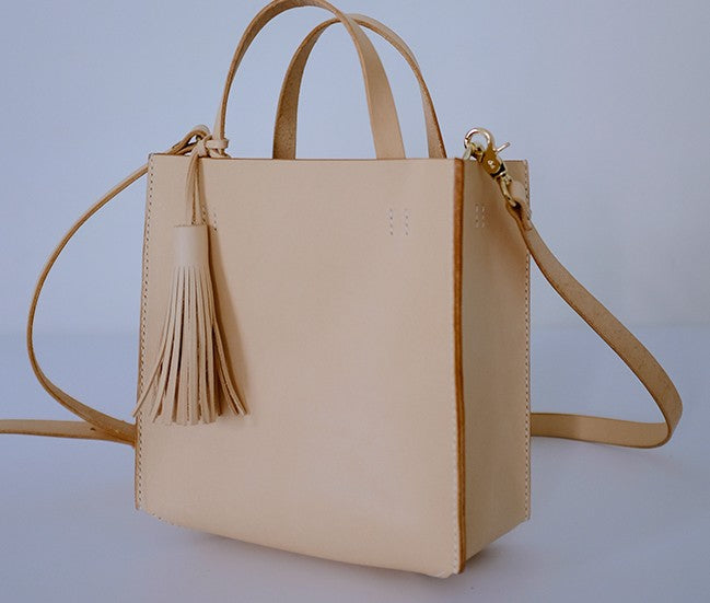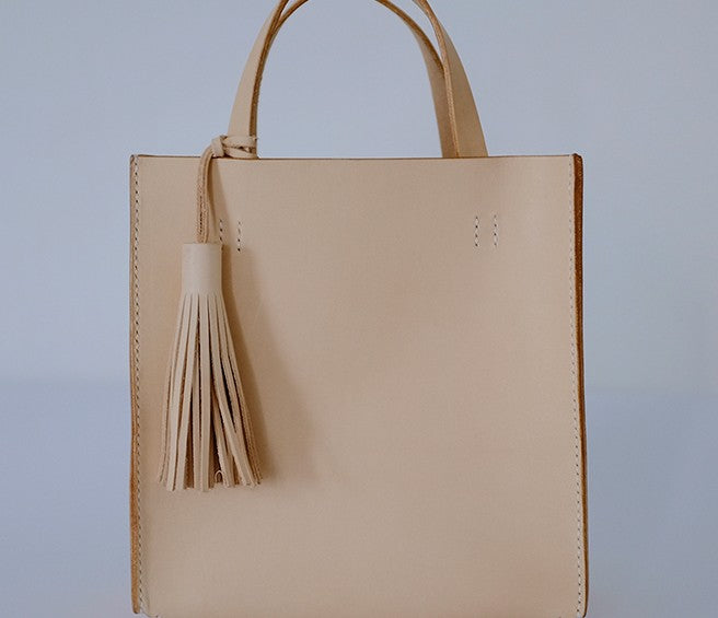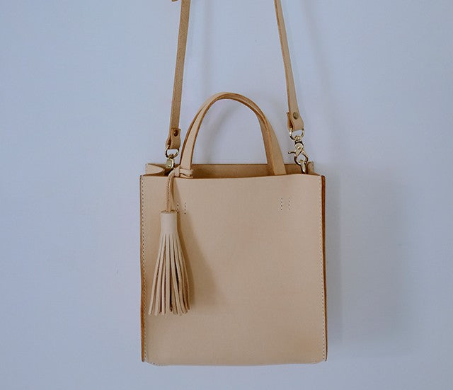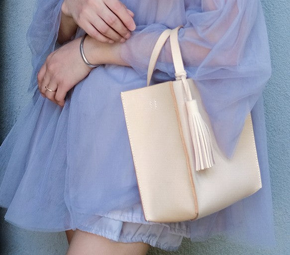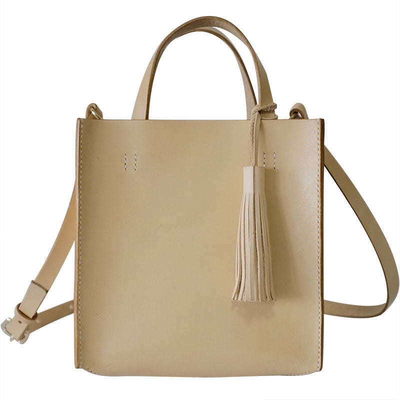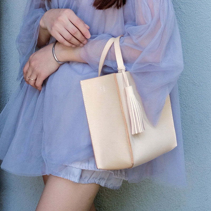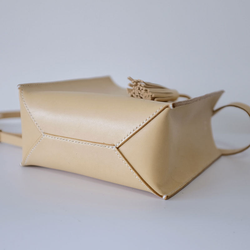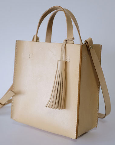 Design: Handmade Leather Small Beige Womens Tote Shoulder Bag Handbag Purse Tassels for Women