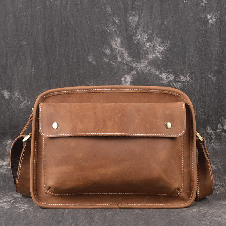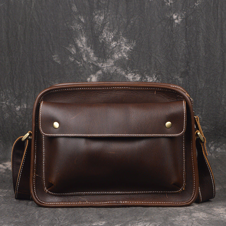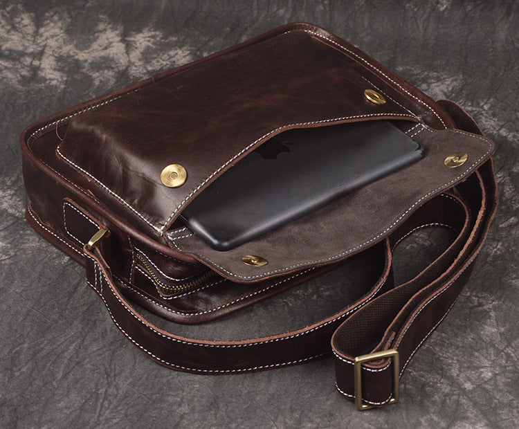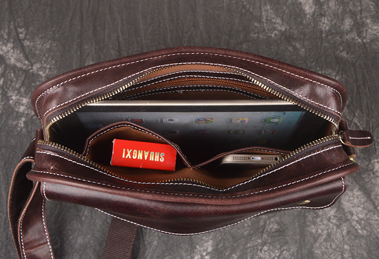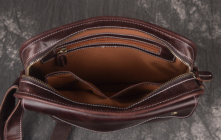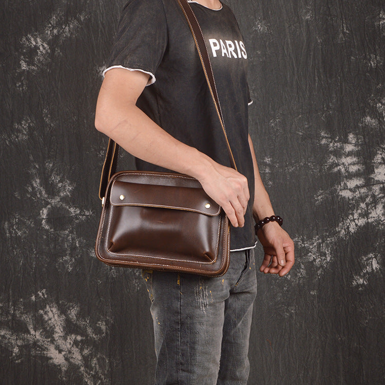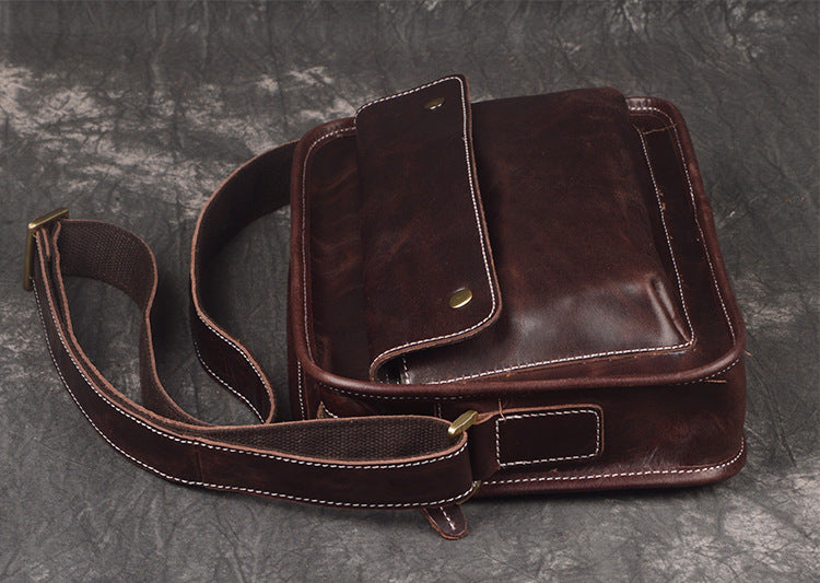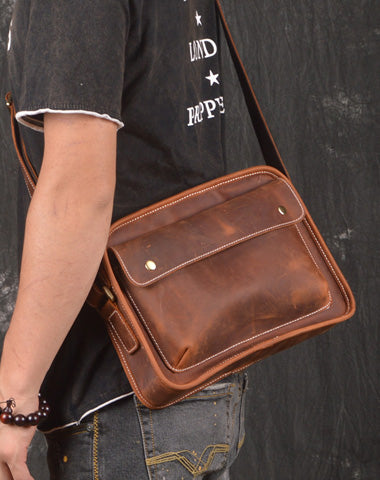 Design: Handmade Leather Small Messenger Bag Shoulder Bag For Men