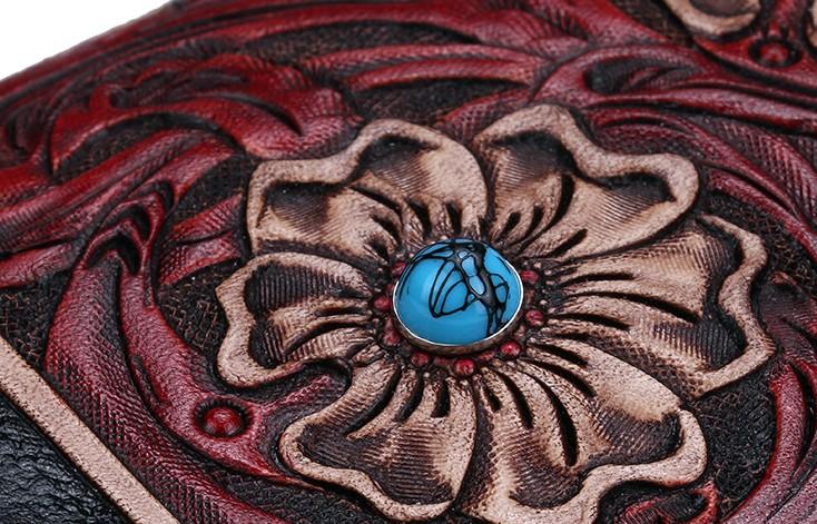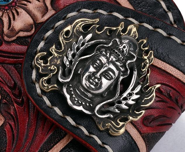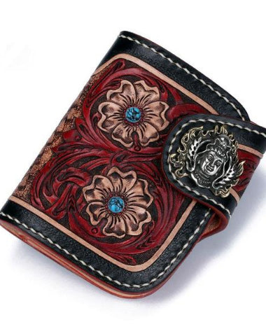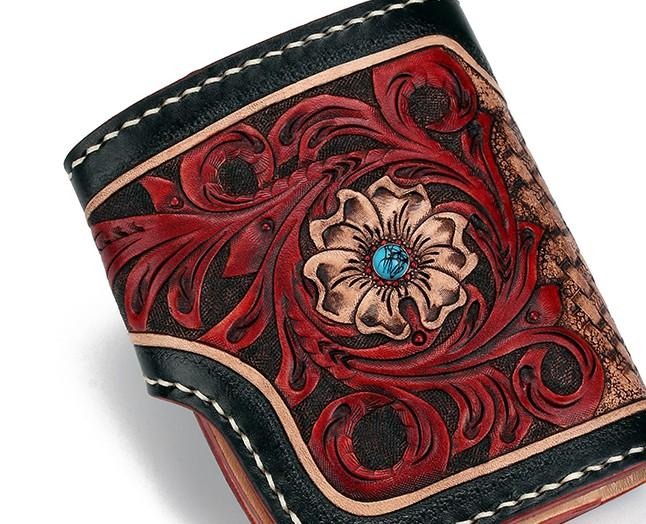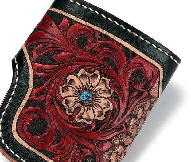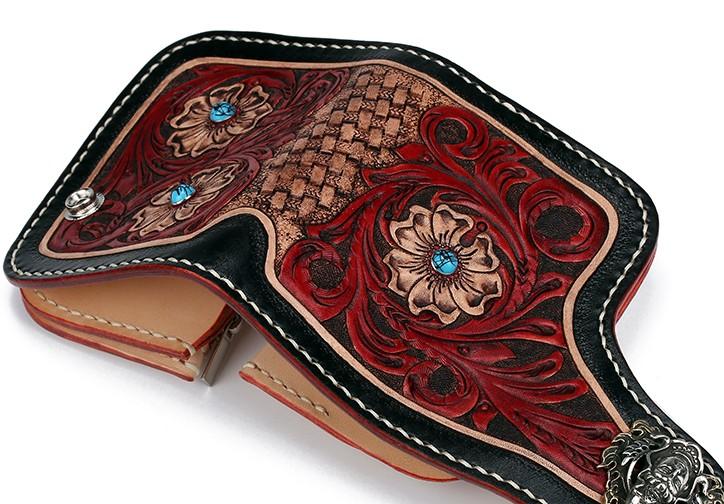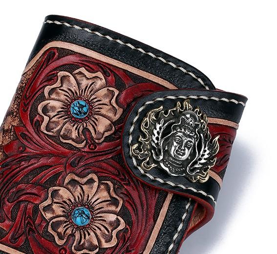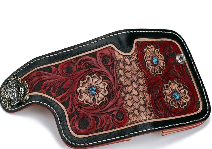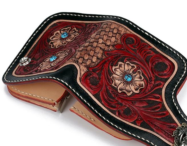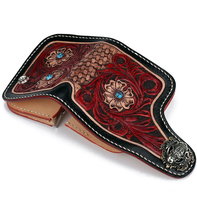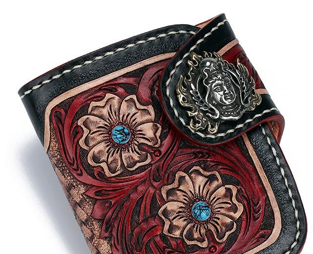 Design: Handmade Leather Small Tooled Floral Mens billfold Wallet Cool Chain Wallet Biker Wallet for Men