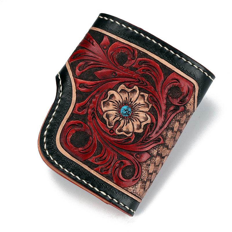 Style: Handmade Leather Small Tooled Floral Mens billfold Wallet Cool Chain Wallet Biker Wallet for Men