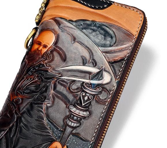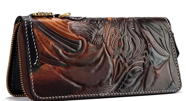 Design: Handmade Leather Taming Dragon Mage Mens Chain Biker Wallet Cool Leather Wallet With Chain Wallets for Men