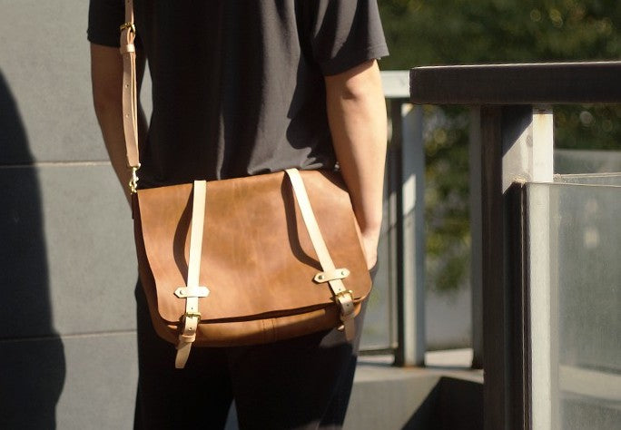 Design: Handmade Leather Tan Mens Messenger Bag Cool Handbag Briefcase for Men
