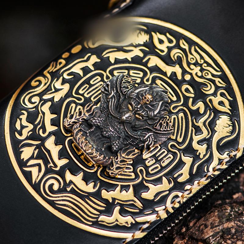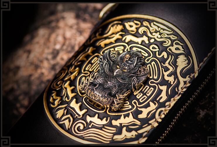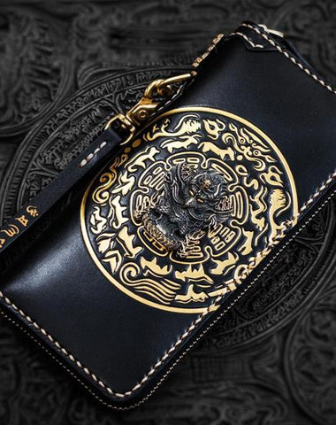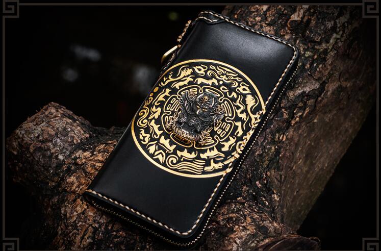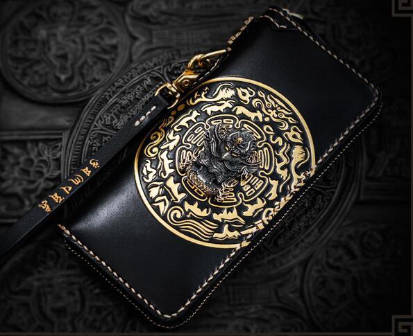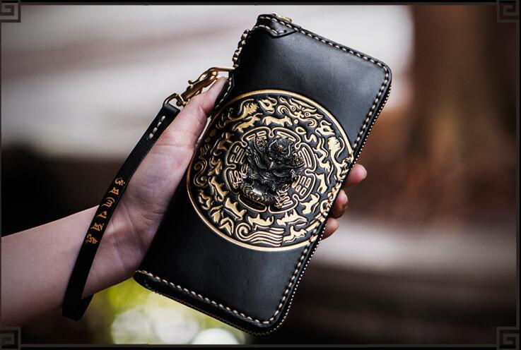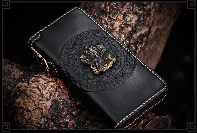 Design: Handmade Leather Tibetan Mens Chain Biker Wallet Cool Leather Wallet Long Clutch Wallets for Men