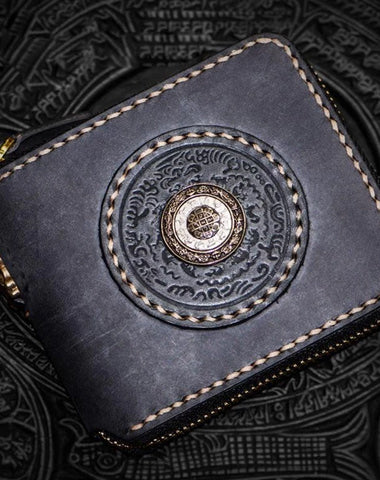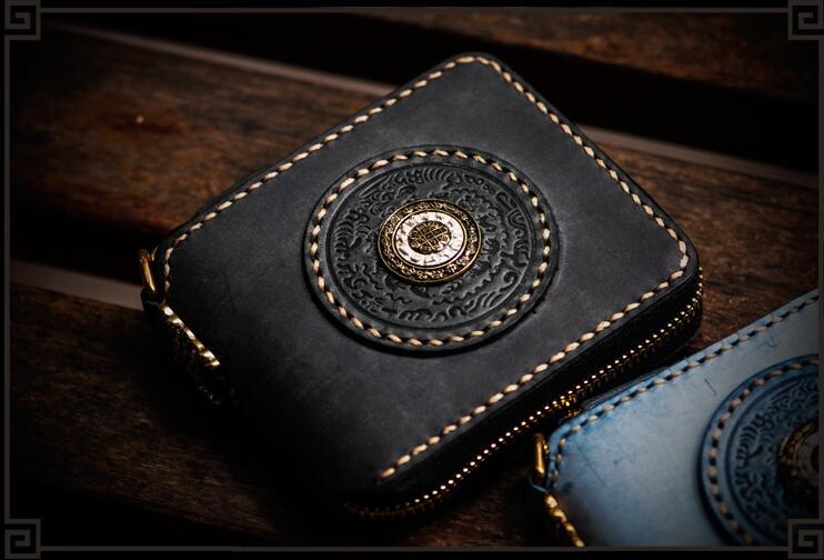 Design: Handmade Leather Crocodile Skin Tooled Mens billfold Wallet Cool Chain Wallet Biker Wallet for Men