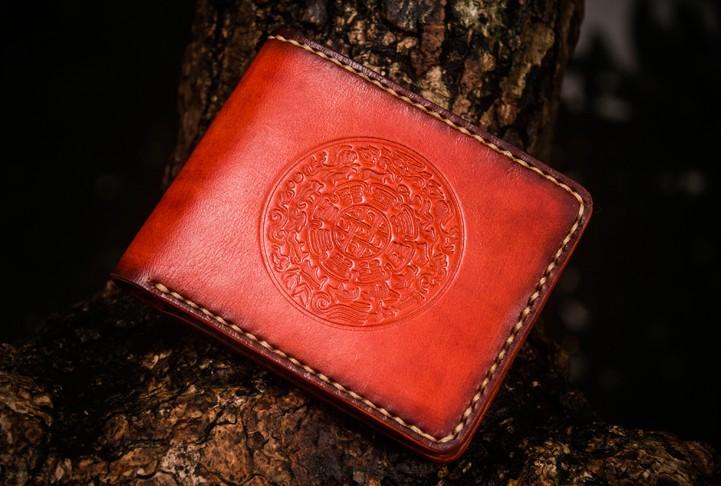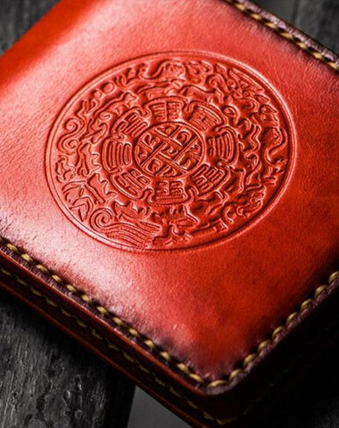Design: Handmade Leather Tibetan Tooled Mens billfold Wallet Cool Leather Wallet Slim Wallet for Men