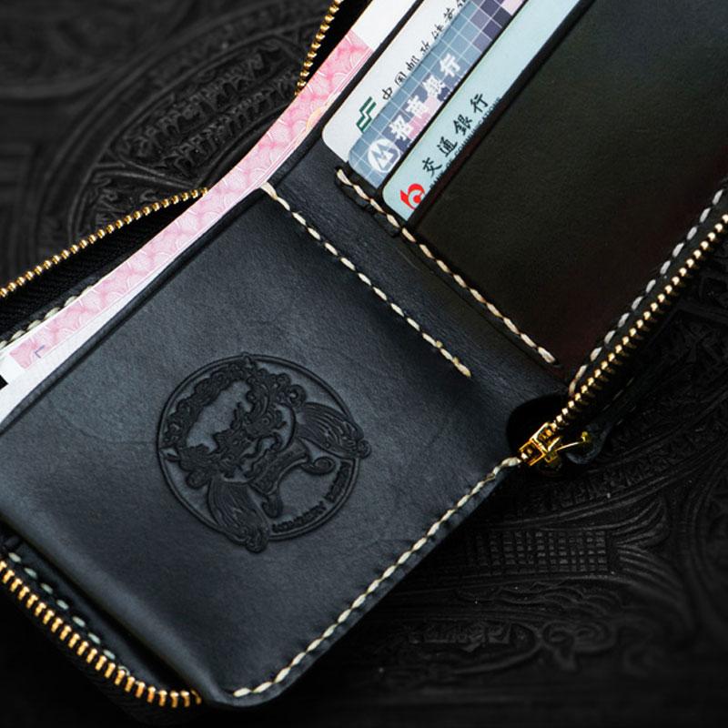 Style: Handmade Leather Tiger Tooled Mens billfold Wallet Cool Clutch Wristlet Bag Chain Wallet Biker Wallet for Men