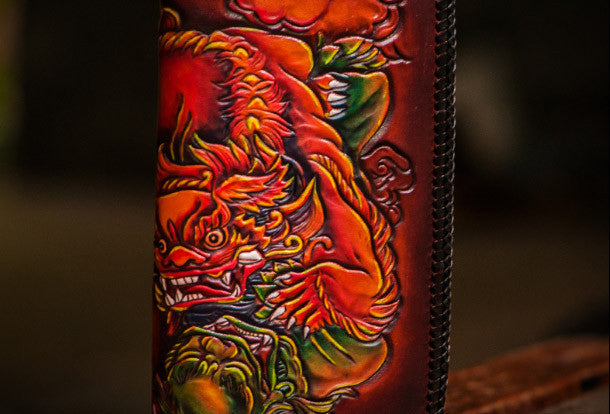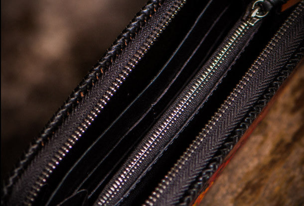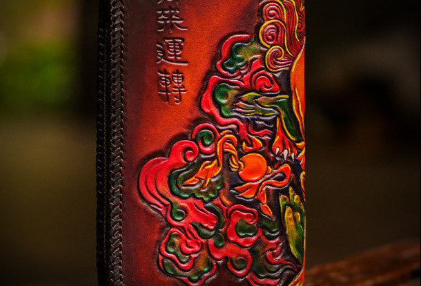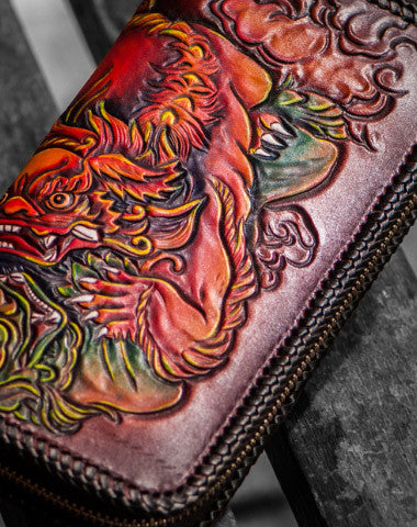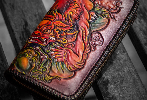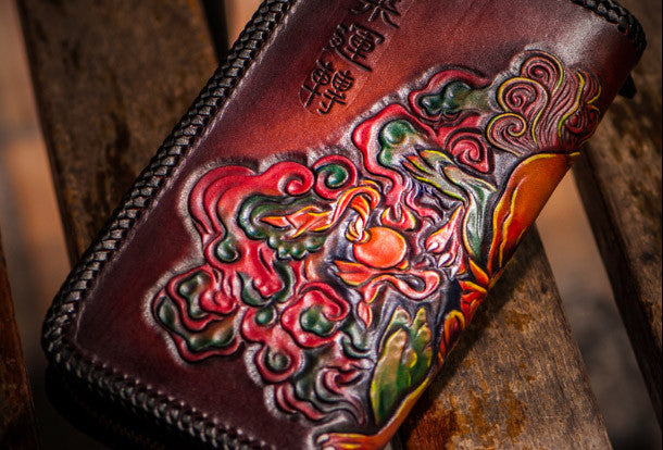 Design: Black?Carved Tooled Tonlion?Clutch zip Leather Wallet