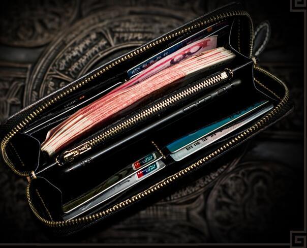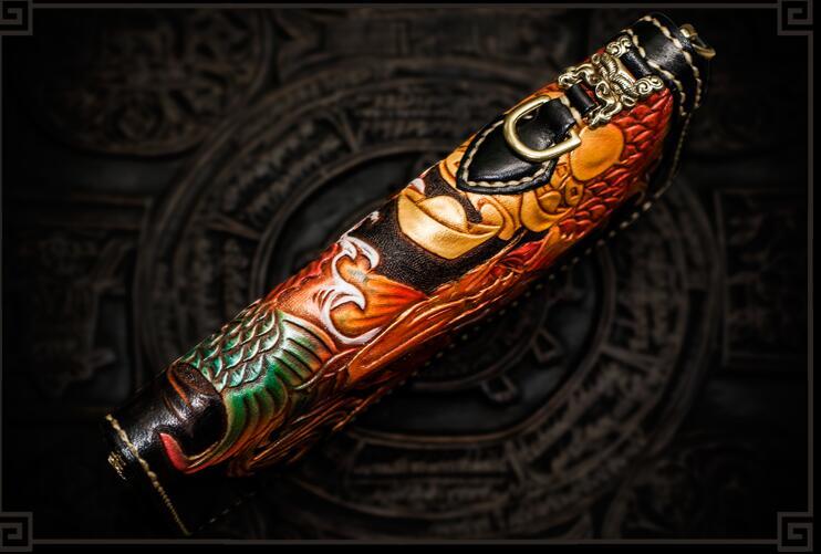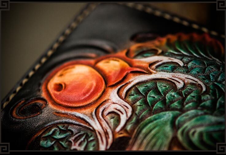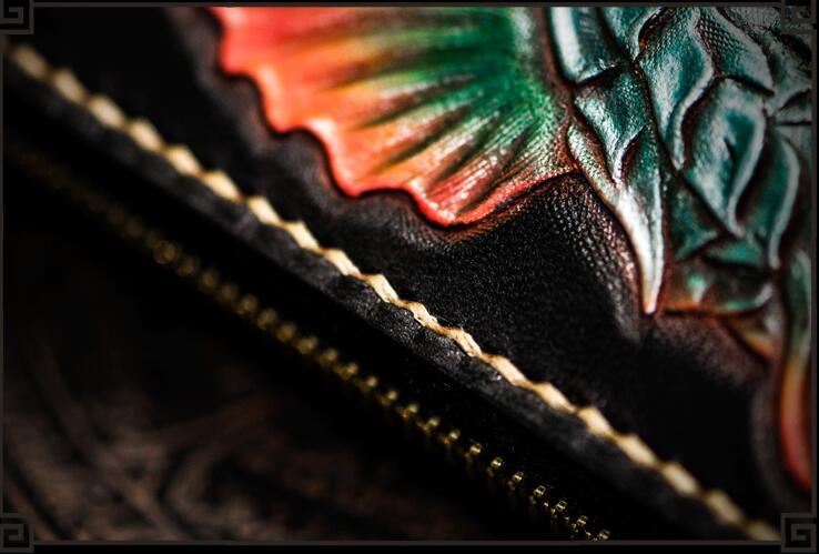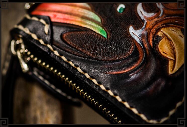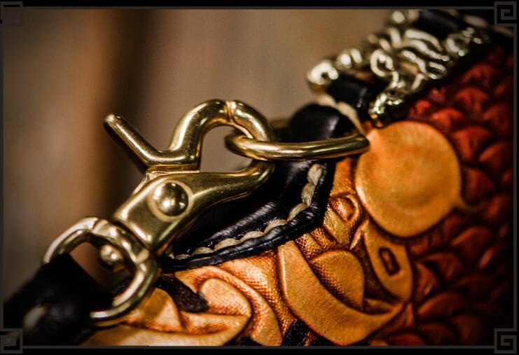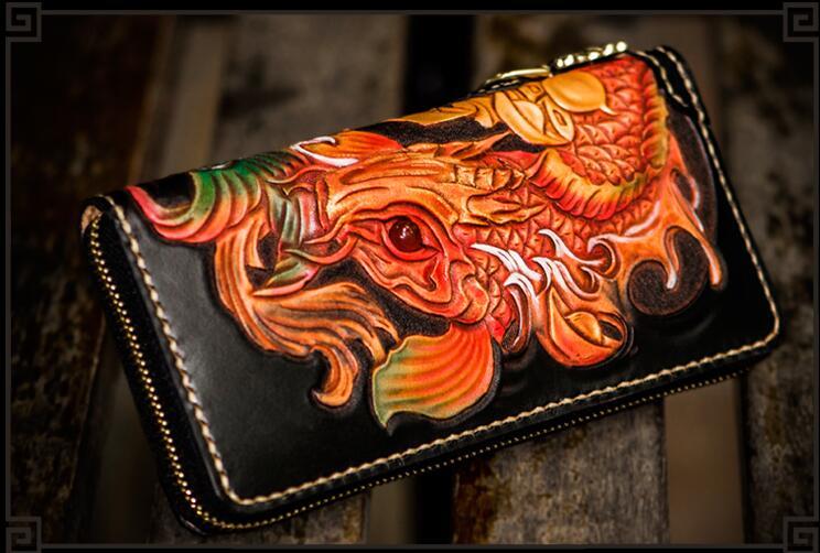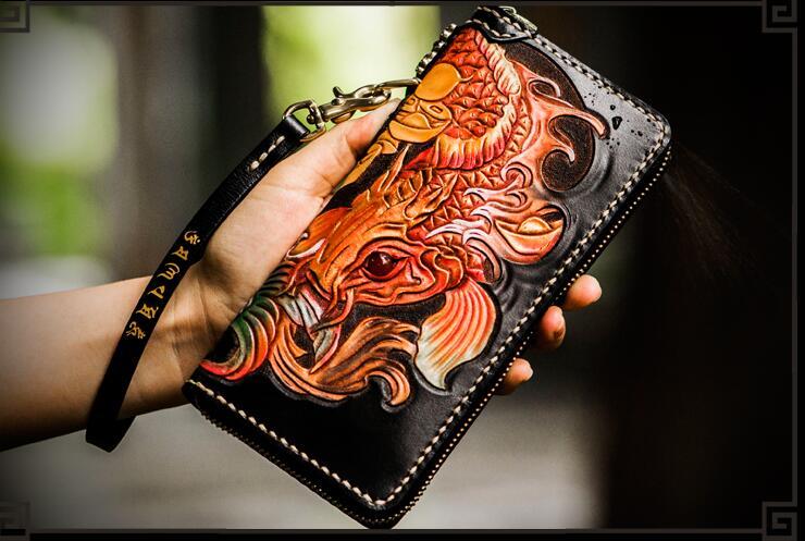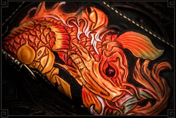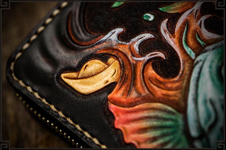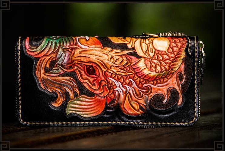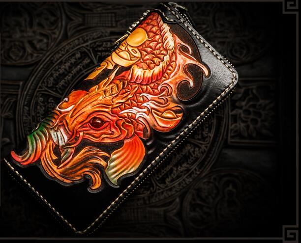 Style: Handmade Leather Tooled Carp Mens Chain Biker Wallet Cool Leather Wallet Long Phone Wallets for Men and it should last a life time