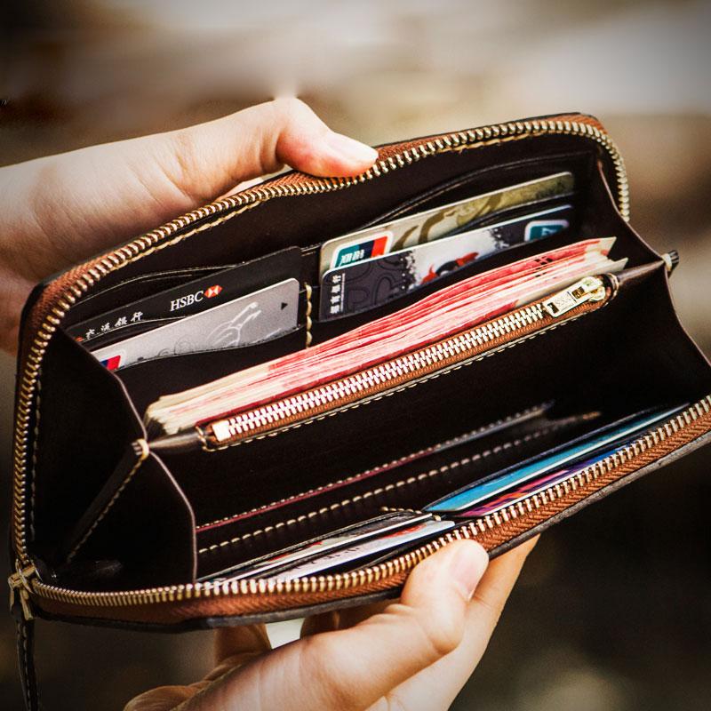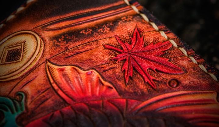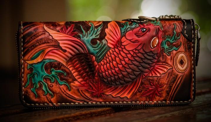 Style: Handmade Leather Tooled Carp Mens Chain Biker Wallet Cool Leather Wallet Long Phone Wallets for Men and it should last a life time
