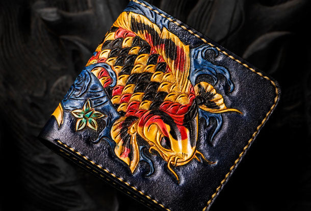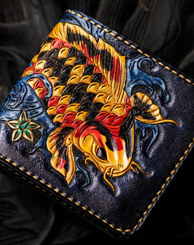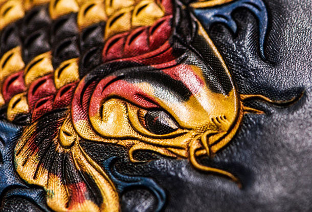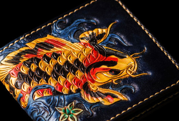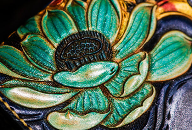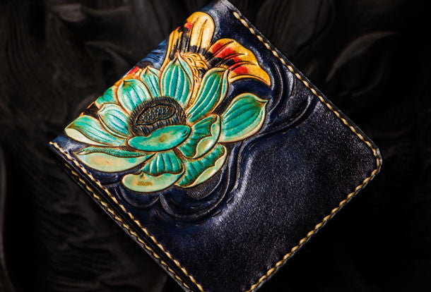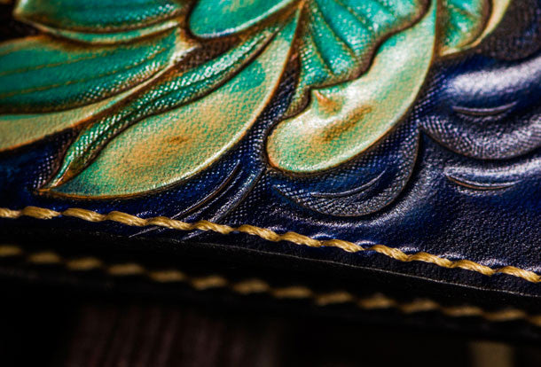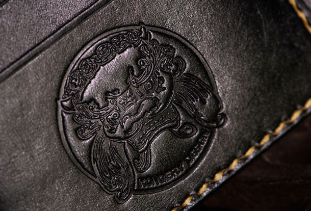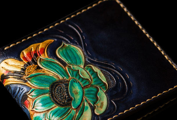 Design: Brown Carved Tooled billfold ?biker Clutch zip Leather Wallet