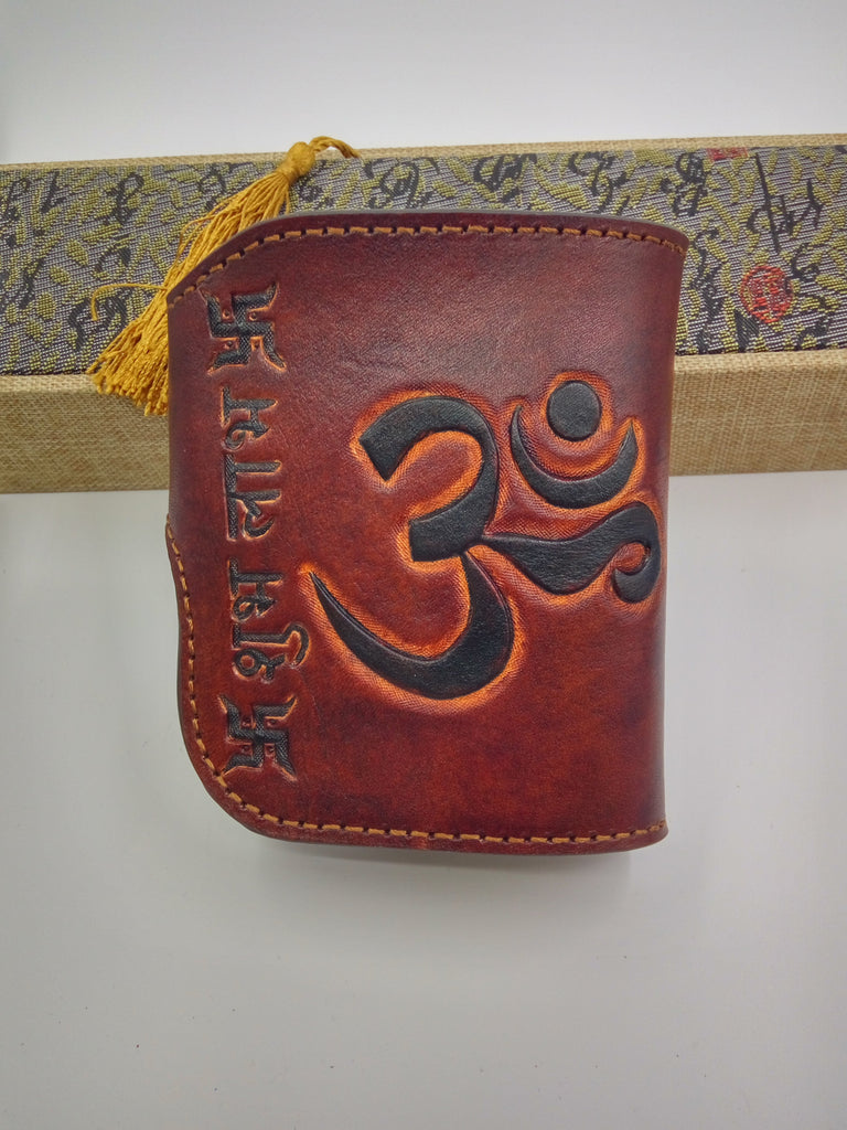 Design: Handmade Leather Tooled Ganesha Mens Chain Biker Wallet Cool Leather Wallet Small Wallets for Men