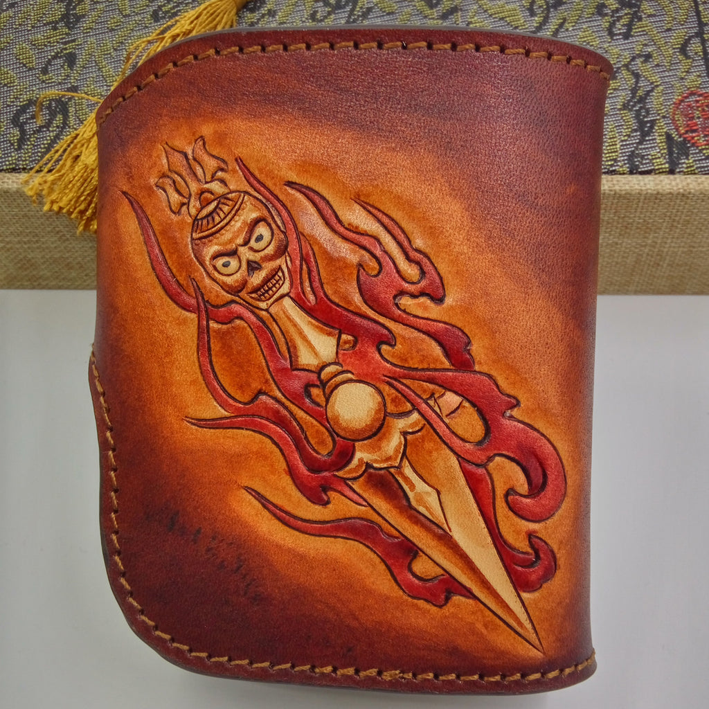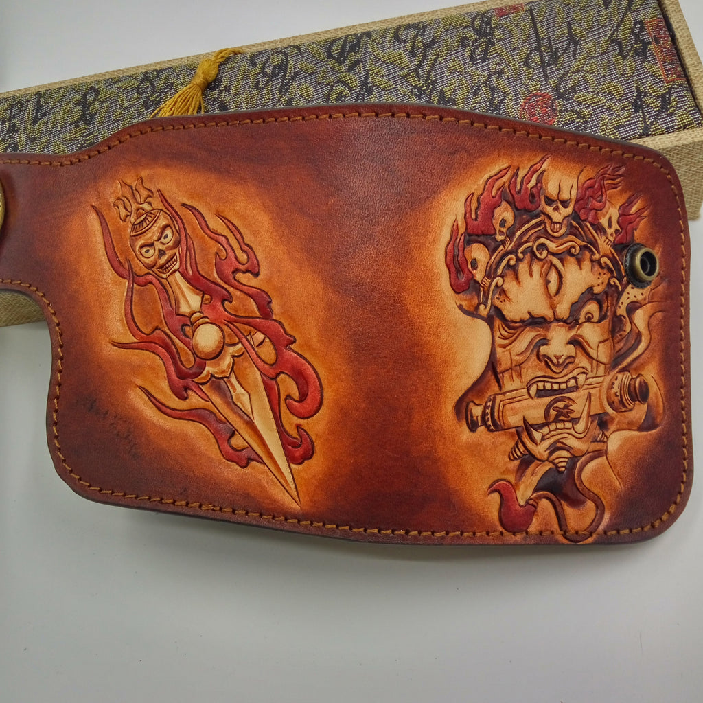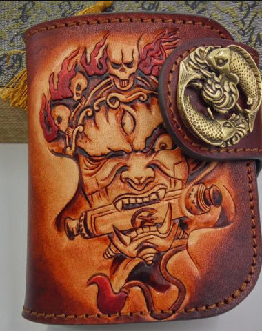 Design: Handmade Leather Tooled Mah¨¡k¨¡la? Mens Chain Biker Wallet Cool Leather Wallet Small Wallets for Men