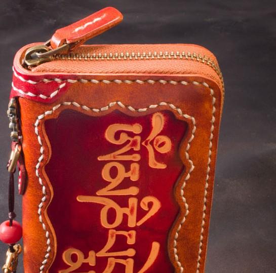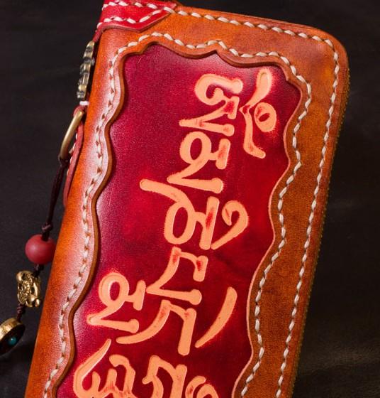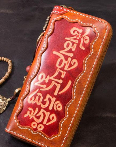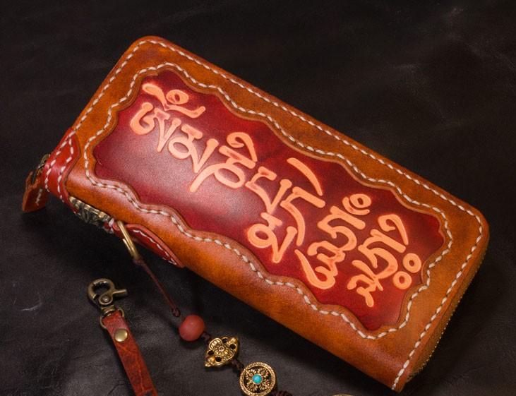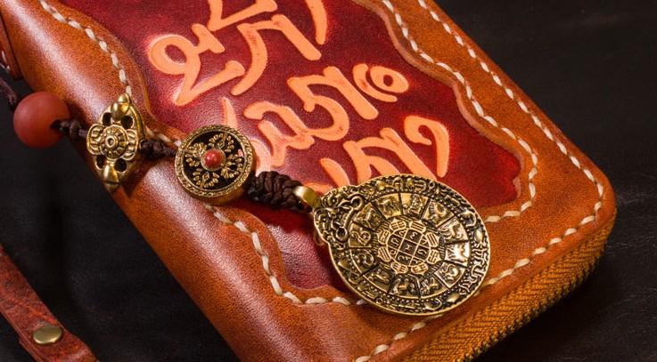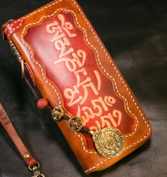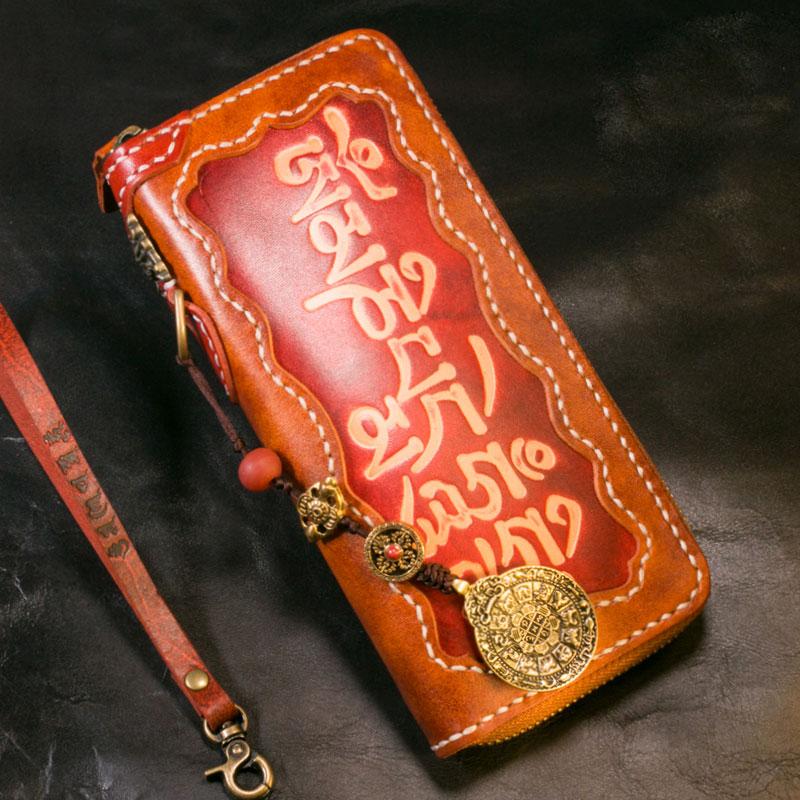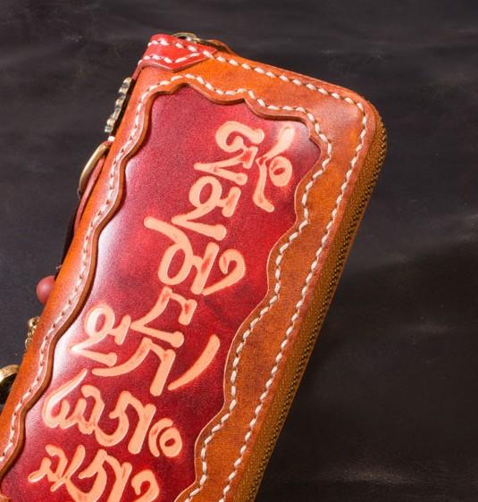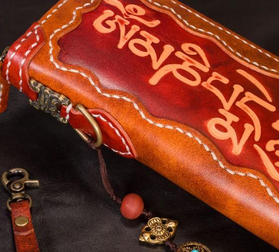 Design: Handmade Leather Tooled Mens Chain Biker Wallet Cool Leather Wallet Long Phone Wallets for Men