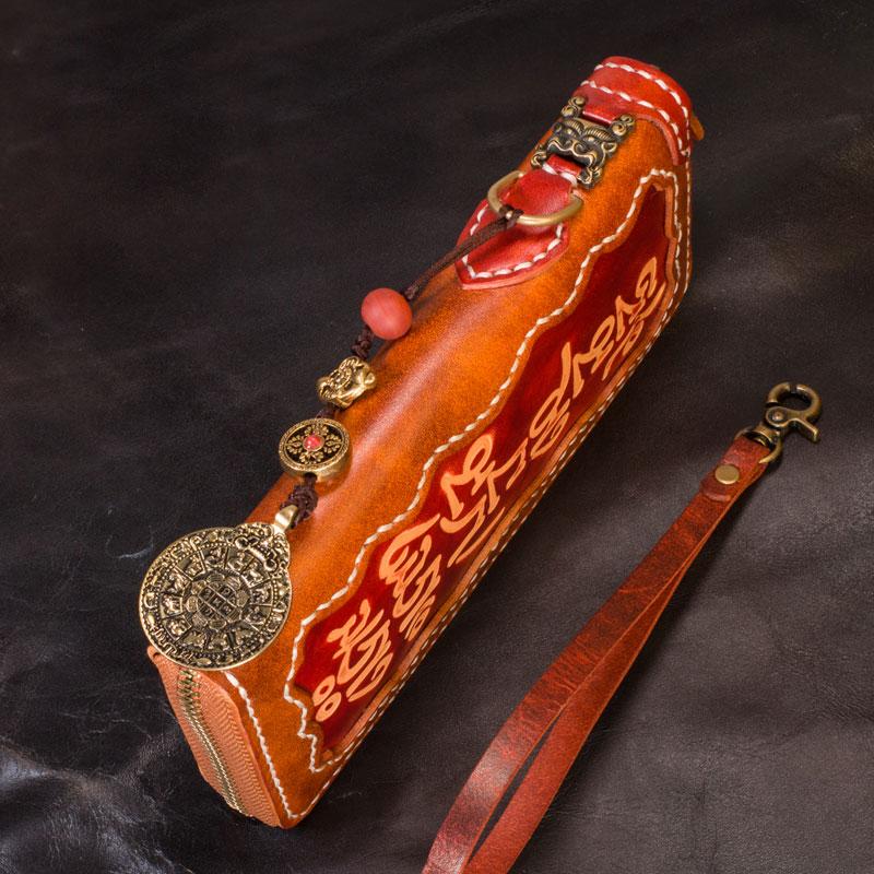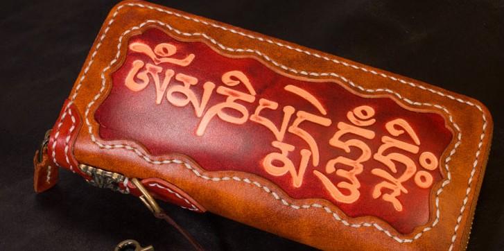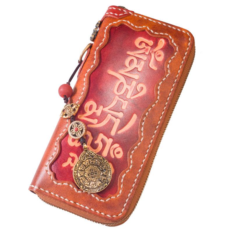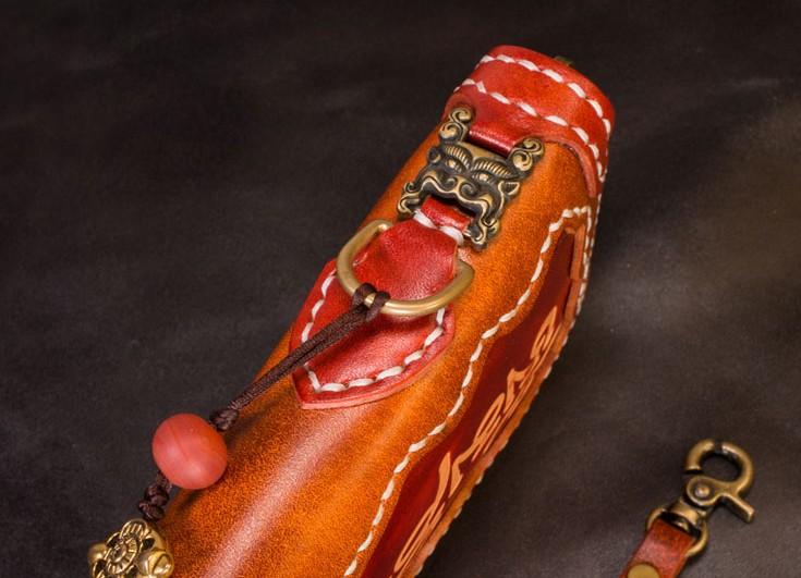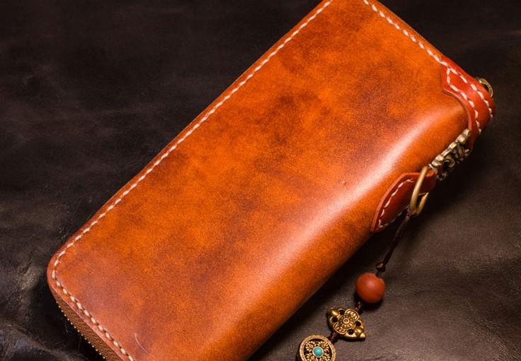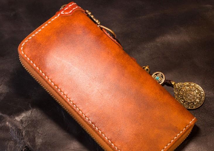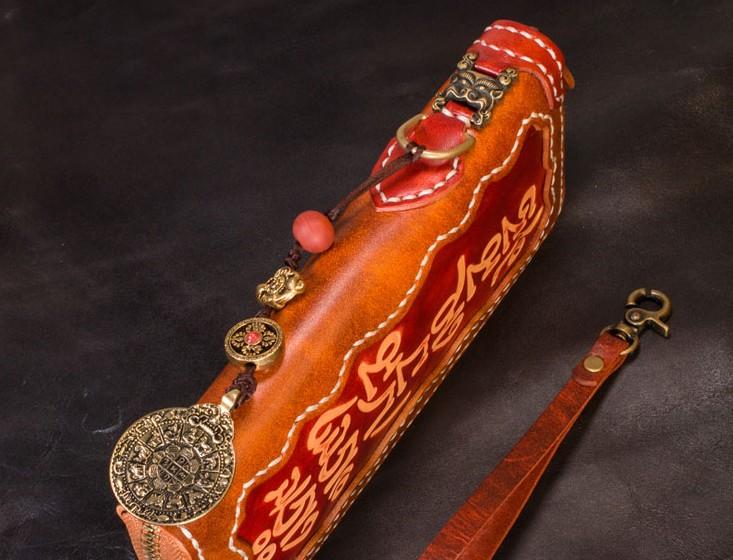 Design: Handmade Leather Tooled Mens Chain Biker Wallet Cool Leather Wallet Long Phone Wallets for Men