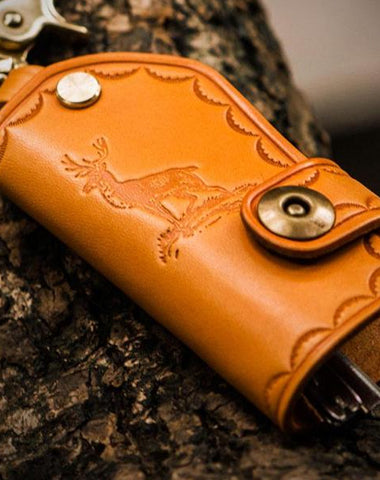 Design: Handmade Leather Tooled Mens Cool Car Key Wallet Car Key Holder Car KeyChain for Men