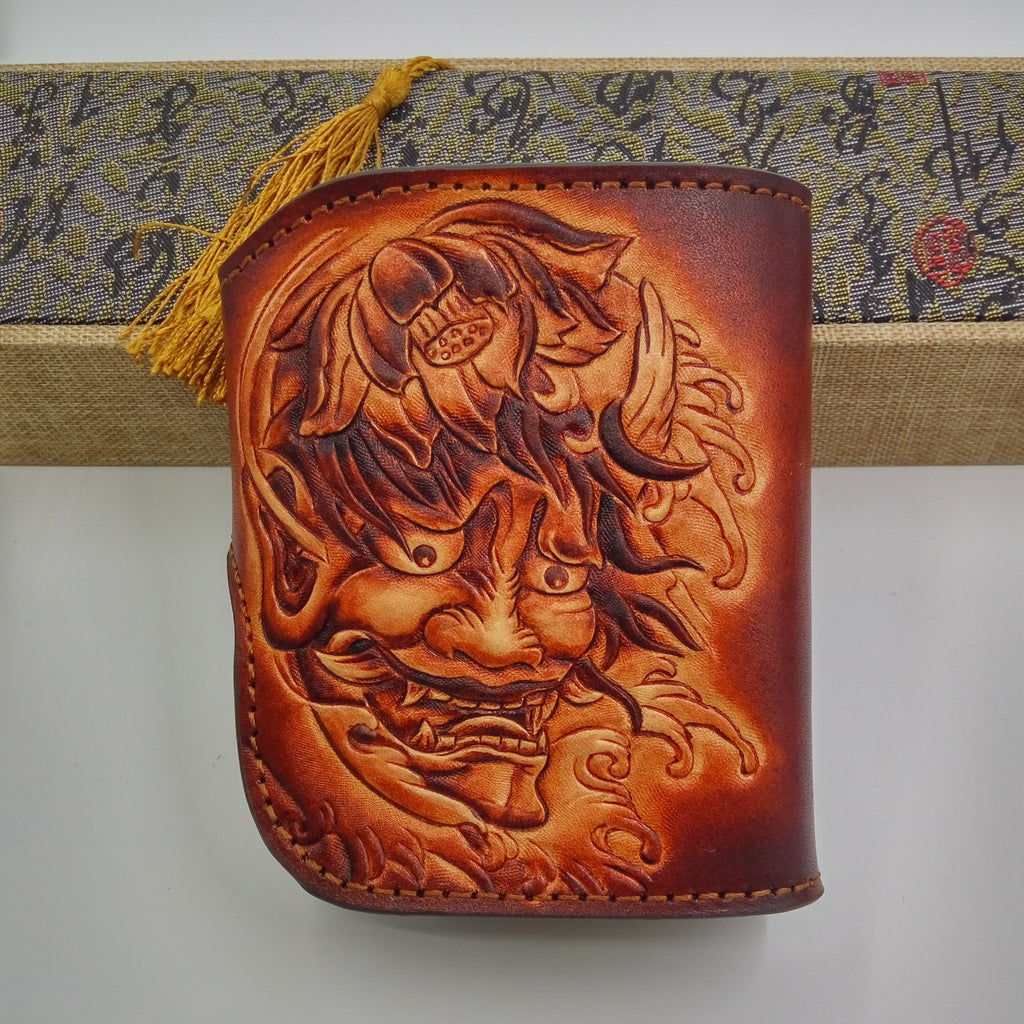 Style: Handmade Leather Tooled Skull Prajna Mens Chain Biker Wallet Cool Leather Wallet Small Wallets for Men
