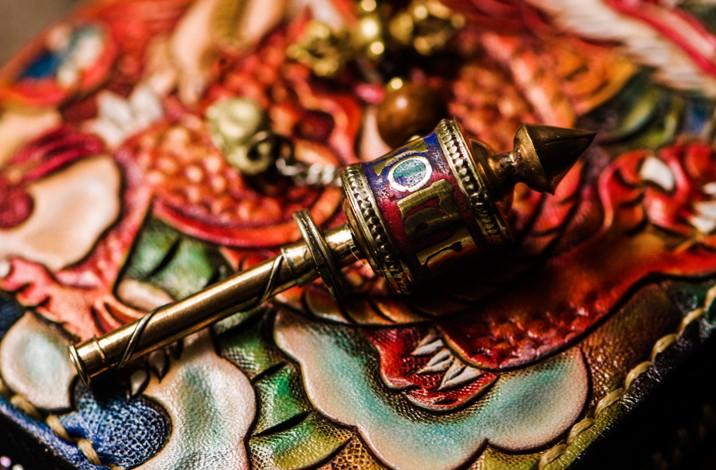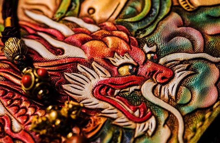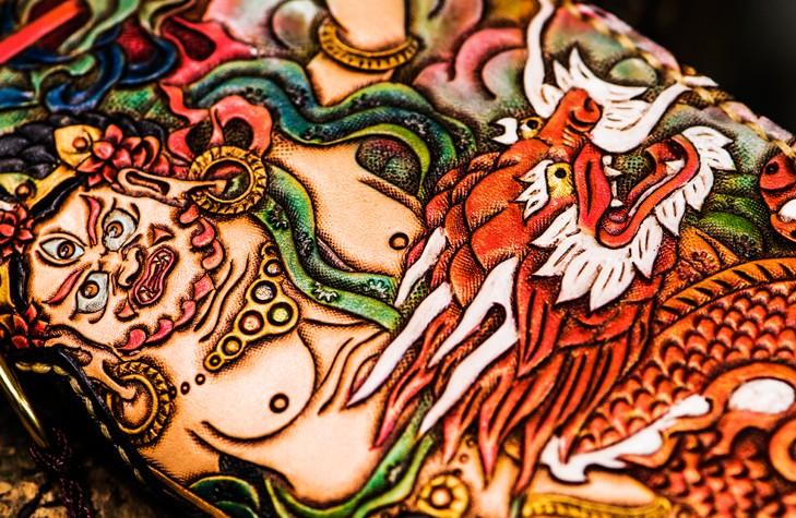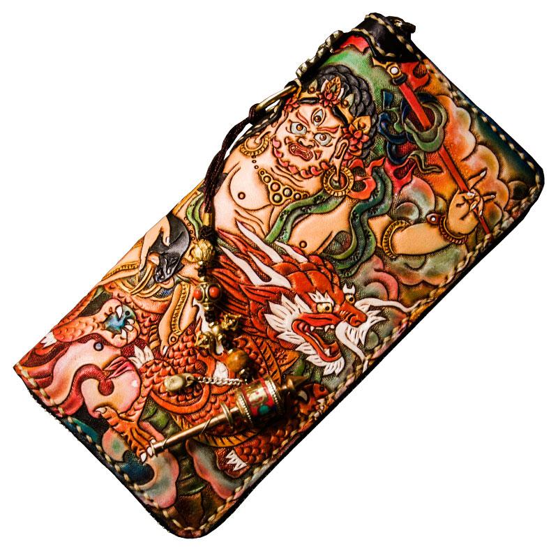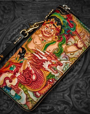 Design: Handmade Leather Tooled White Jambhala Mens Chain Biker Wallet Cool Leather Wallet Zipper Long Phone Wallets for Men