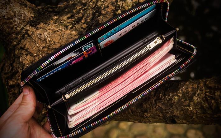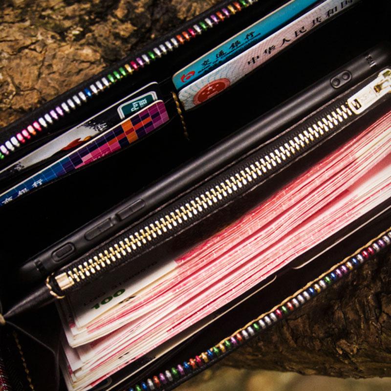Slots: 2 full size bill slot, 8 card holders, 1 zipper slot