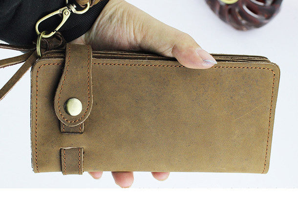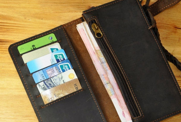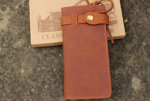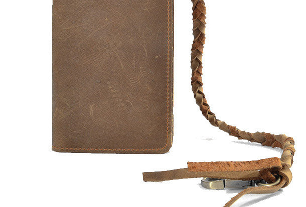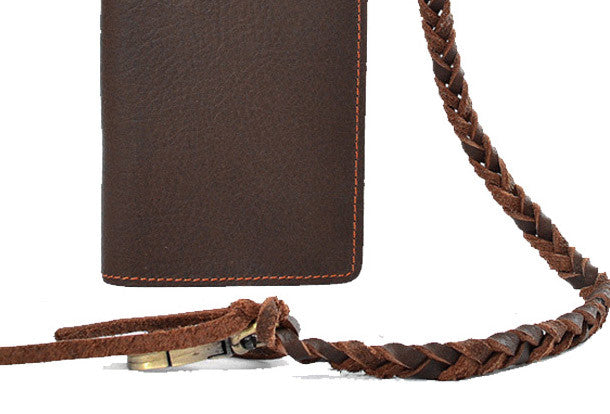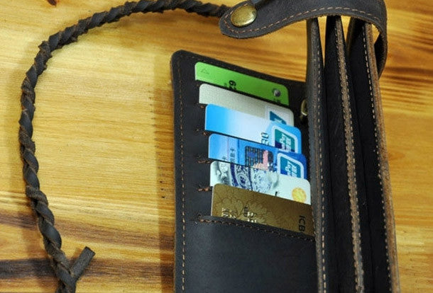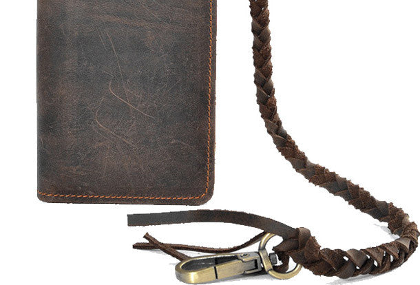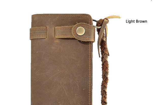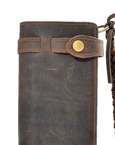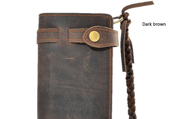 This is?Handmade leather Vintage brown bifold biker chain wallet men long wallet purse.The wallet is bifold,color is dark brown,light brown,coffee.There are 3?full size bill slots/holders, 6?ID/credit card slots/holders,1 zip?slot.