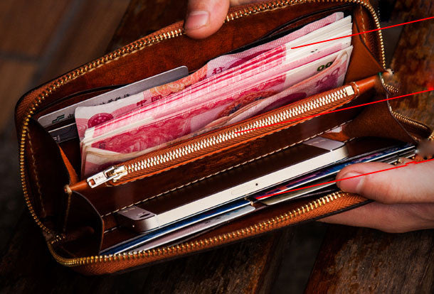 Slots: 2 full size bill slots, 8 card holders, 1 zip sl
