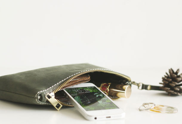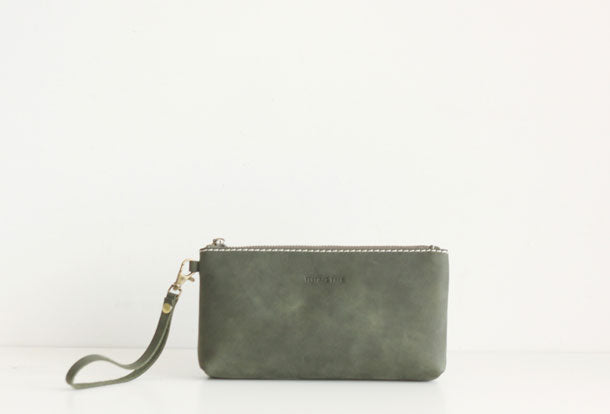 Design: Handmade leather zip phone clutch purse long wallet purse clutch women