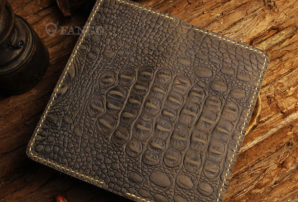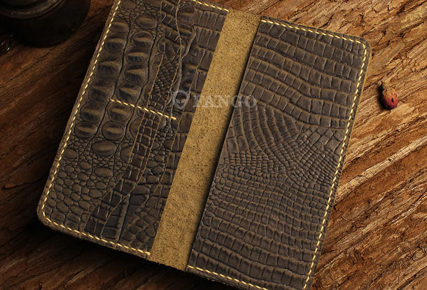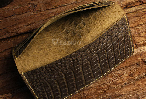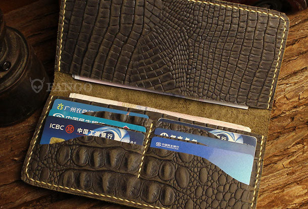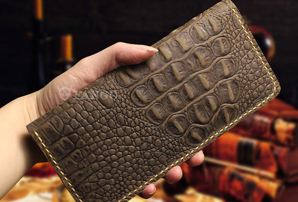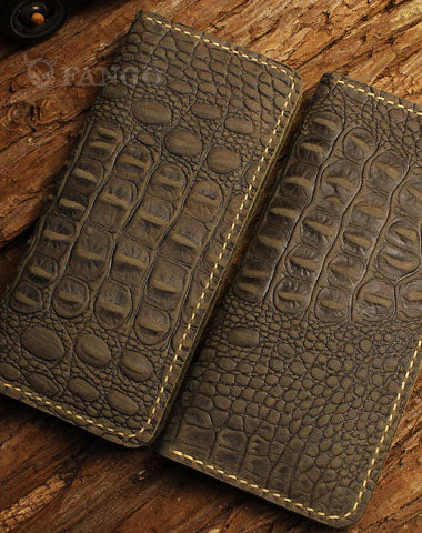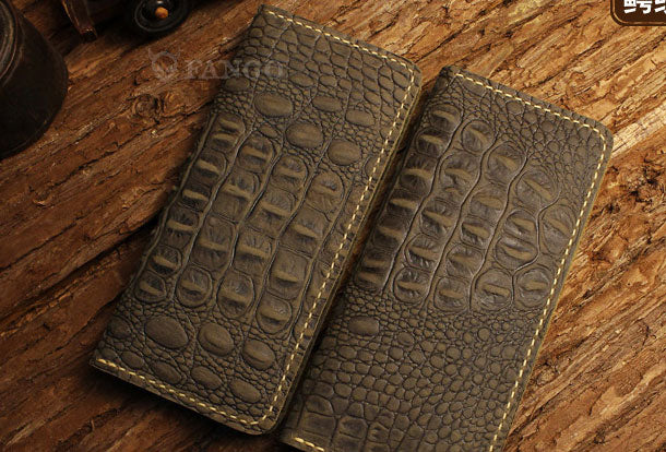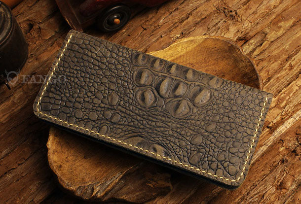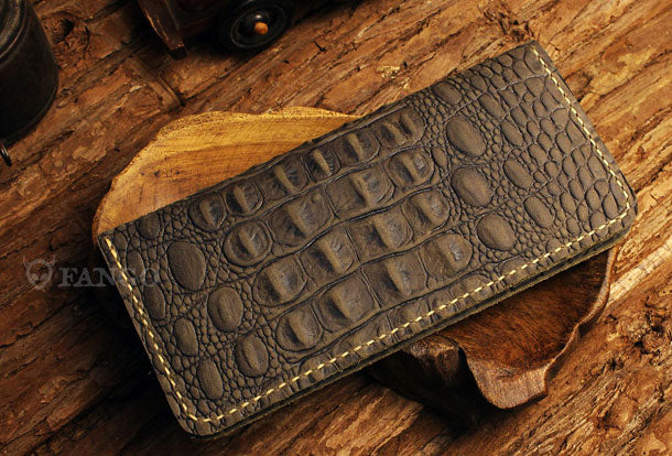 Design: Handmade long leather wallet crocodile style leather clutch wallet for men zip